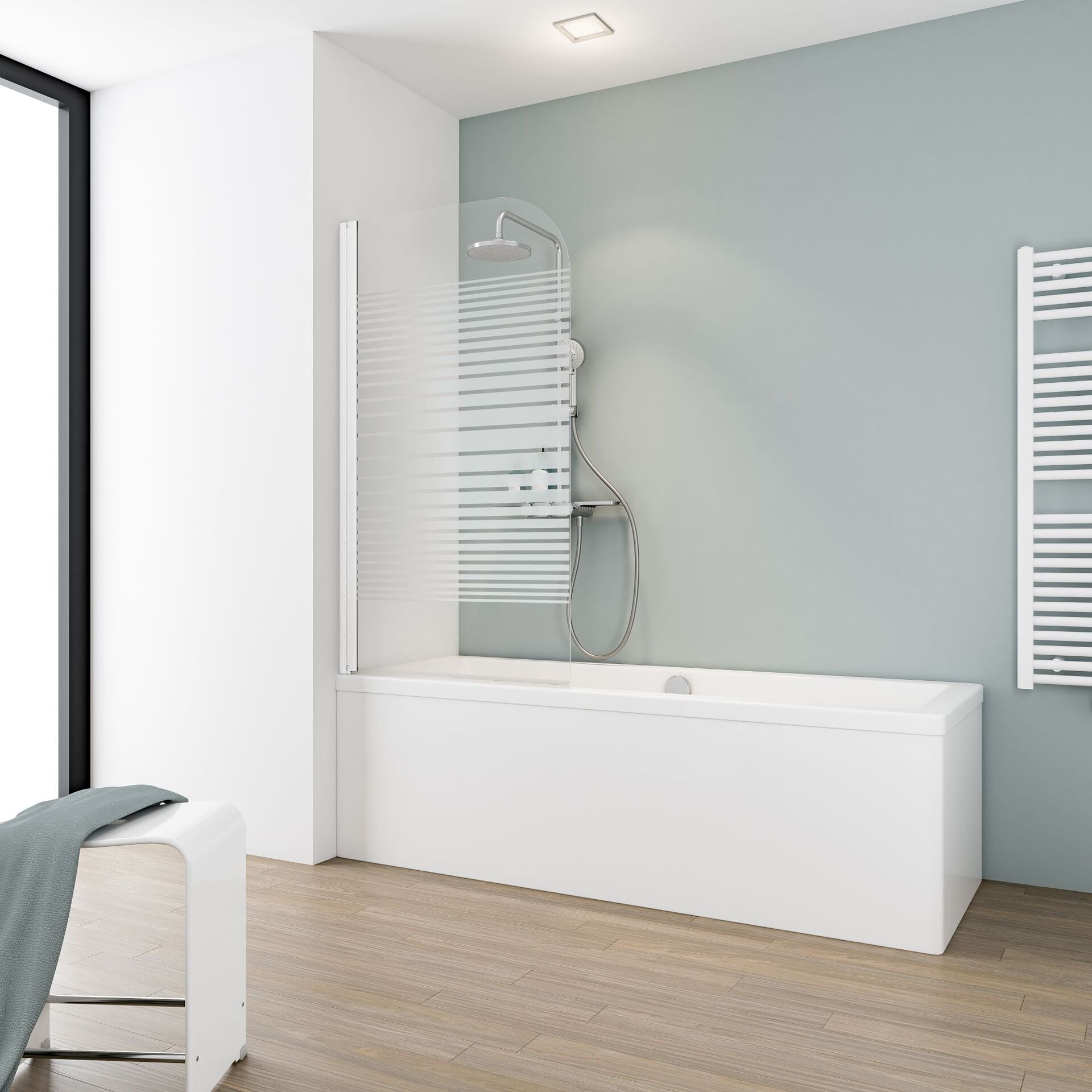 ExpressPlus Badewannenfaltwand 1-teilig mit Dekor-Querstreifen, alpinweiß, 140x80cm