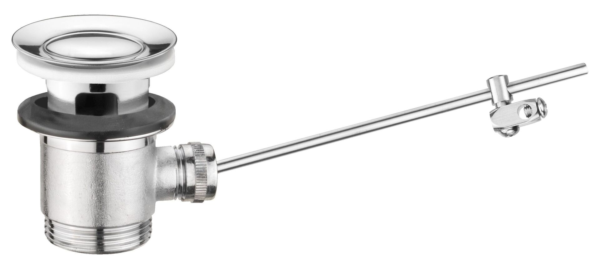 Exzenter-Ablaufventil mit Stange und Schloss für Zugstangenbetätigung.