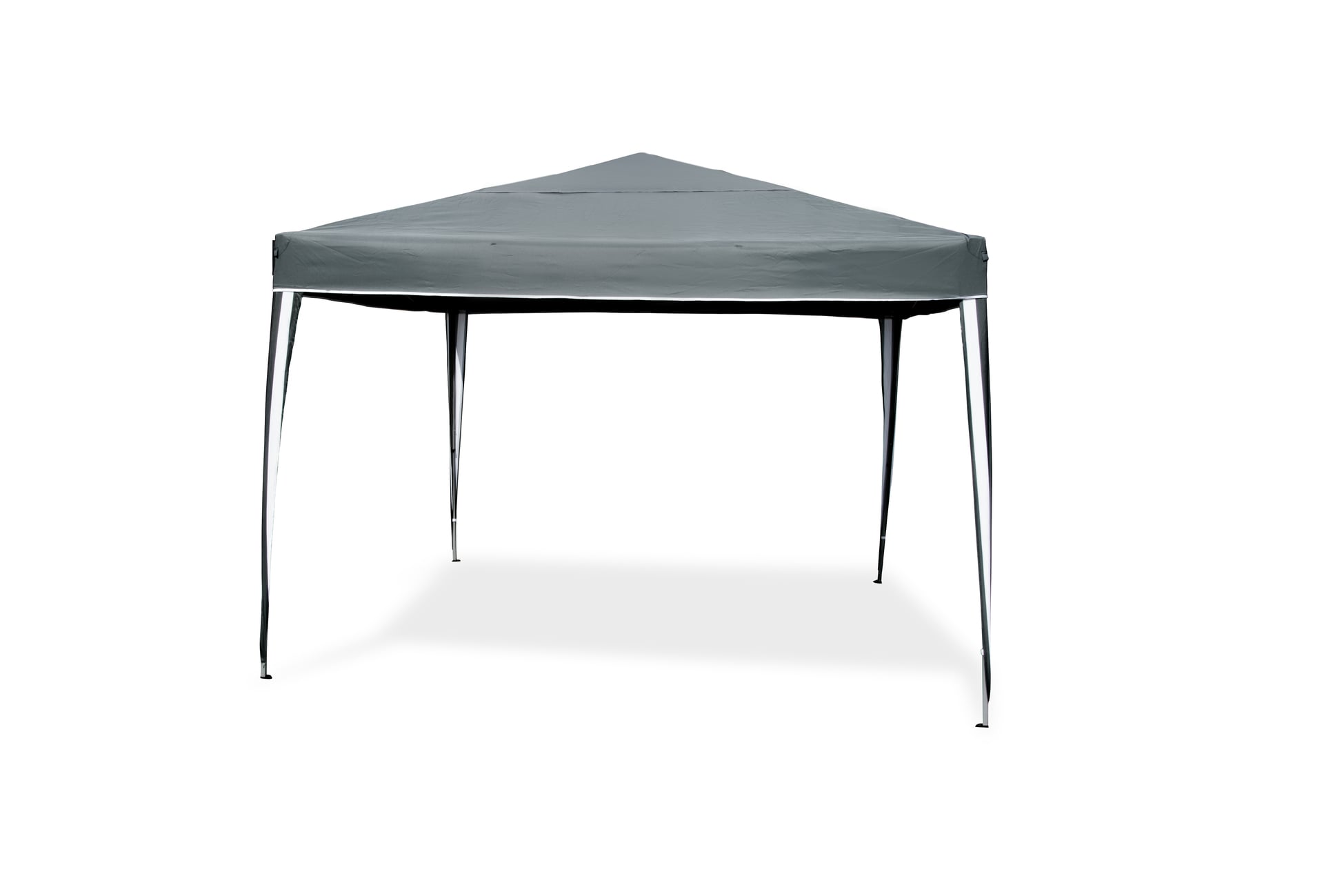 Grauer Pavillion 3x3m mit Polyester-Bespannung und Stahlgestell.
