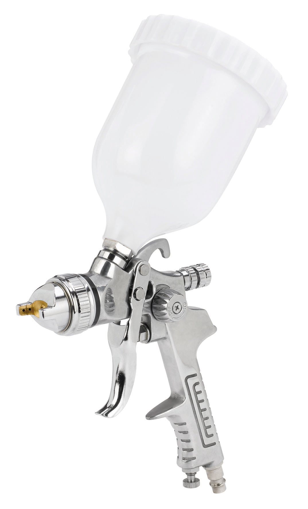 – Abgabeleistung: -, – Akkukapazität: -, – Akkutechnologie: -, – Ansaugleistung: -, – Anzahl Druckanschlüsse: 1,0, – Anzahl Zylinder: -, – Arbeitsdruck: 3 – 3,5 bar, – Breite: 13, – Drehzahl: -, – Druck: -, – Füllleistung: -, – geeignet für: anspruchsvolle Lackierarbeiten mit einem Arbeitsdurck von 3 bis 3,5 bar, – Gewicht: 0,6, – Höhe: 11,8, – Kesselgröße: 0,6L, – Länge: 22,5, – Motorleistung: –