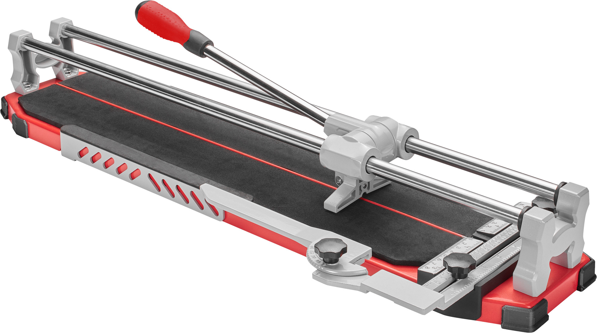 Fliesenschneider 630 mm Grundplatte aus Stahl (Bodenstärke 1,8 mm), leichtgängige Schneidvorrichtung durch Kugellager, mit weichem TPR-Griff, Verlängerungsstangen aus Stahl an den Seiten für mehr Auflagefläche großer Fliesen, für Fliesen und Platten bis 630 mm und 14 mm Stärke, mit Wolframcarbid-Rad 22 x 6 x Ø 6 mm stark, mit verstellbarem Anschlagwinkel, max. Fliesengröße für diagonale Schnitte: 445 x 445 mm, Ersatzrad: COXT790122, COXT790123, zum Zuschneiden von Wand- und Bodenfliesen