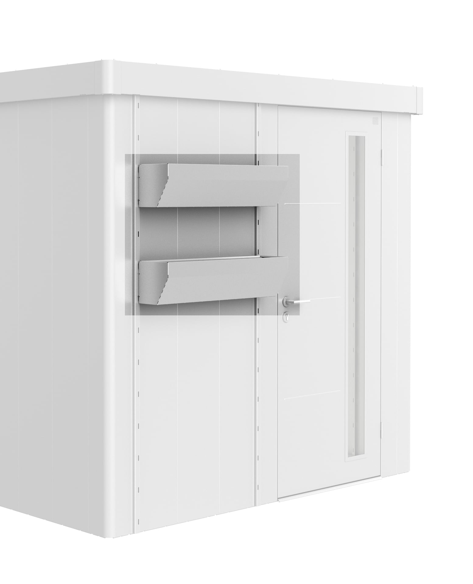 Zwei Steher in der Farbe des Gerätehauses werden an der Außenwand angeschraubt und die Blumenkästen in beliebiger Höhe eingehängt. Kunststoffeinsätze zur einfacheren Bepflanzung werden standardmäßig mitgeliefert. Tipp: Für das Gerätehaus Neo ist das FloraBoard auch für das Seitendach mit Seiten- oder Rückwand erhältlich.
