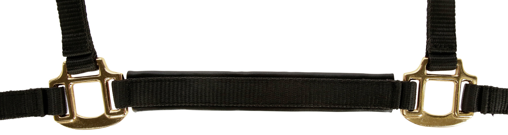 Genick- und Nasenriemen durch Dornschnallen verstellbar, hochwertige Bandqualität, aus verschleißfestem Material und starken Nähten, Backenstücke und Kinnstößel 3-lagig vernäht, massive und formschöne Beschläge, praktisches Öffnen und Schließen des Halfters mit Karabinerhaken, Bandbreite: 20 mm