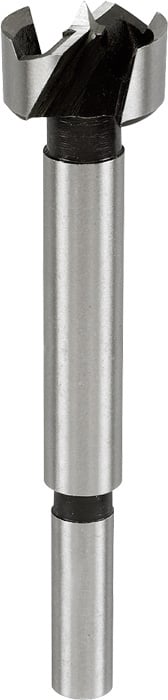 Forstnerbohrer, nach DIN 7483 G, Holzbearbeitung, vergüteter Spezialstahl, Bohrkopf geschmiedet und geschliffen, 2 Hauptschneiden und 2 Seitenschneiden, Zentrierspitze, Farbe blank mit schwarzen Nuten, ausrissfreie Bohrlochkanten, für alle Dreh- und Schlagbohrmaschinen mit 10 / 13 mm Futter, für Hart- und Weichholz, furniertes Holz, Tischlerplatten. Ausrissfreie Bohrlöcher auch bei großen Durchmessern.