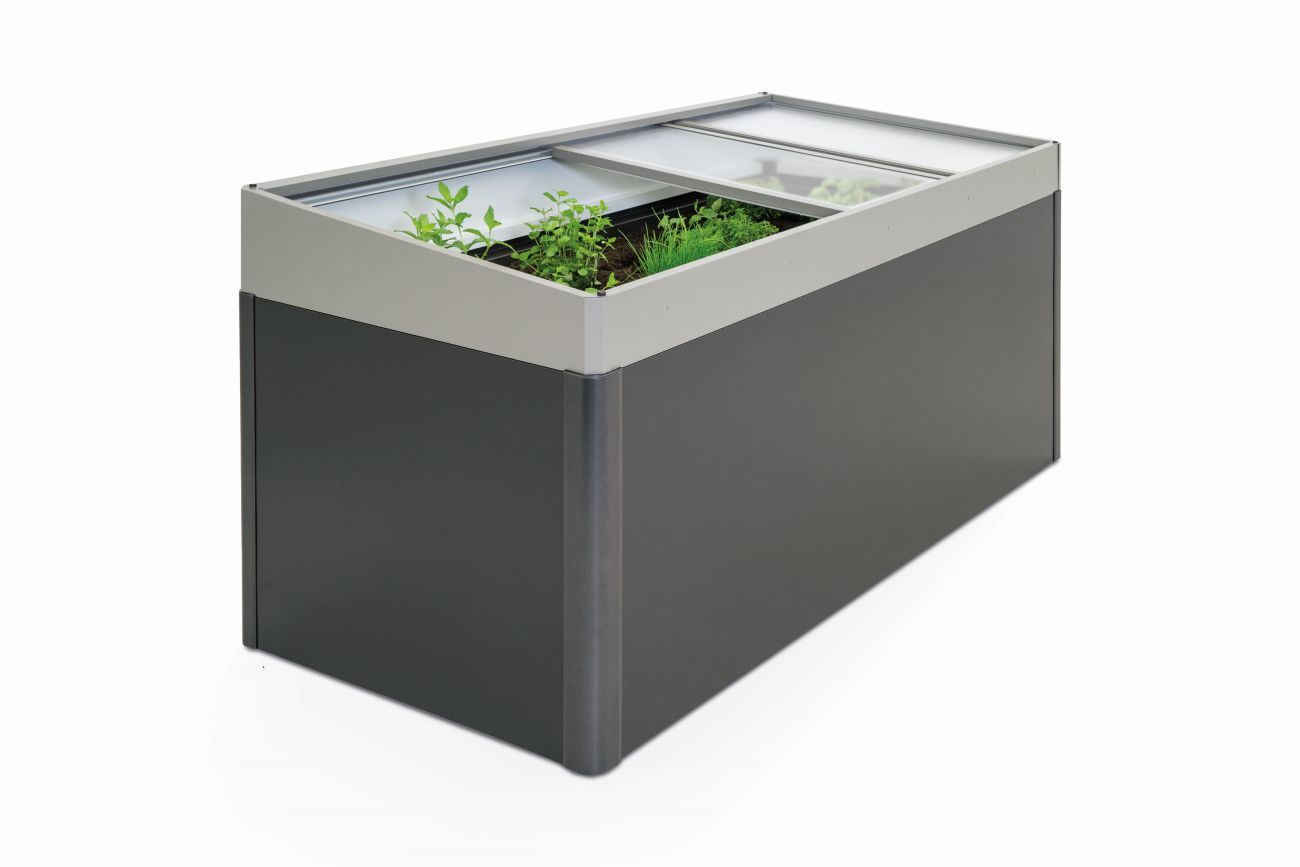 Effizienter Frostschutz und gute Zugänglichkeit durch 4 verschiebbare Doppelstegplatten, die sich leicht entfernen lassen. Der Frühbeetaufsatz ist sturmfest und mit einem Regenwasserablauf ins Innere des HochBeets ausgestattet.