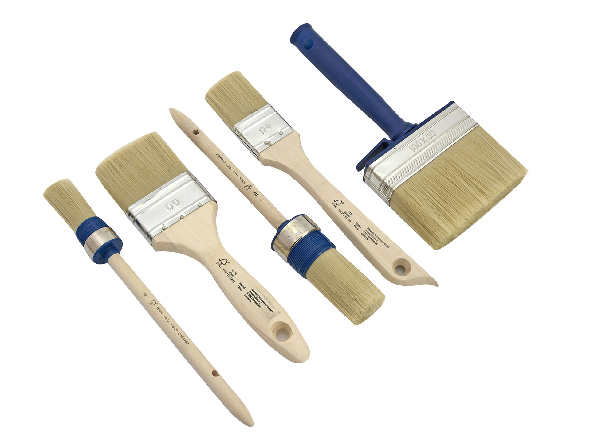 1 Flachpinsel, 1 Fensterpinsel, 2 Ringpinsel, 1 Flächenstreicher