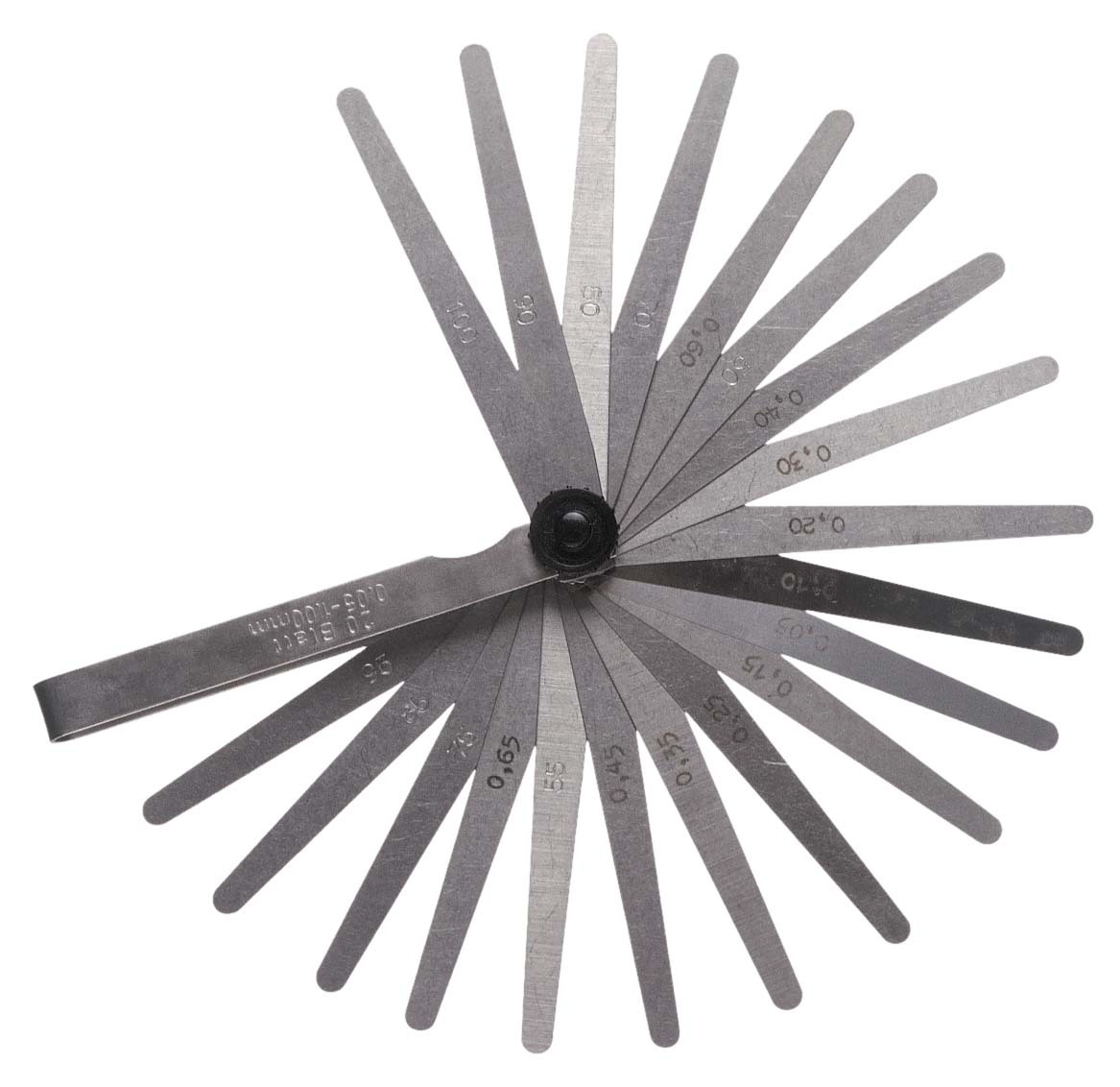 CONNEX Fühlerlehre 20 Blatt, 0,05-1,00. Die Fühlerlehre 100mm mit vernickeltem Halter hat 20 blanke, konische Blättchen für genaues Messen mit einem Messbereich von 0,05- 1,00m , 0,05mm steigend.