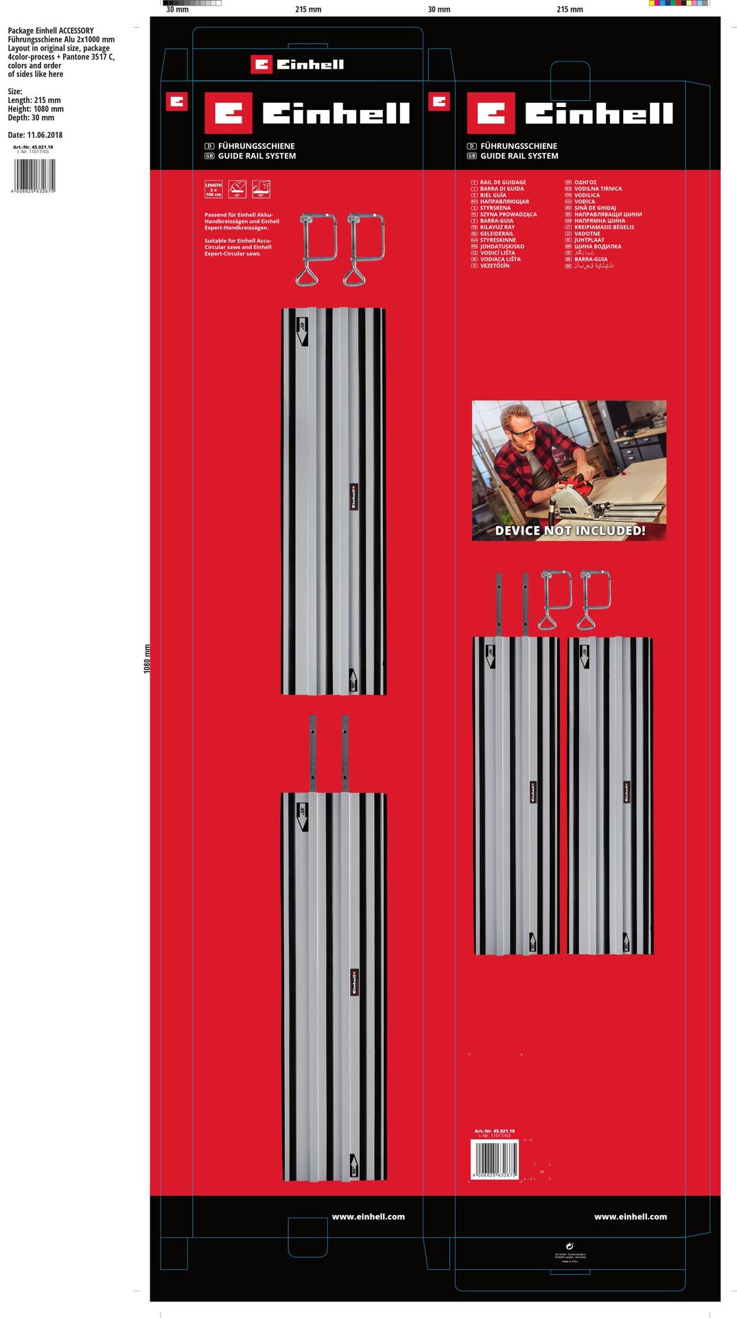 Dank der Einhell Führungsschiene Alu 2x1000mm gelingen Schnitte sauber und präzise. kompatibel mit der Tauchsäge und den Einhell Expert- Handkreissägen, ermöglicht die Führungsschiene rechtwinklige wie Schrägschnitte gleichermaßen. Der Gleitbelag sorgt für den Leichtlauf der Maschinen, der Splitterschutz dient dafür, saubere Schnittkanten zu erzielen. Das Verbindungselement sorgt für eine exakte Geradheit der beiden Schienenteile. Die Haftbändermachen die Unterseite rutschfest und bieten so zusätzliche Sicherheit und einen professionellen Arbeitsablauf.