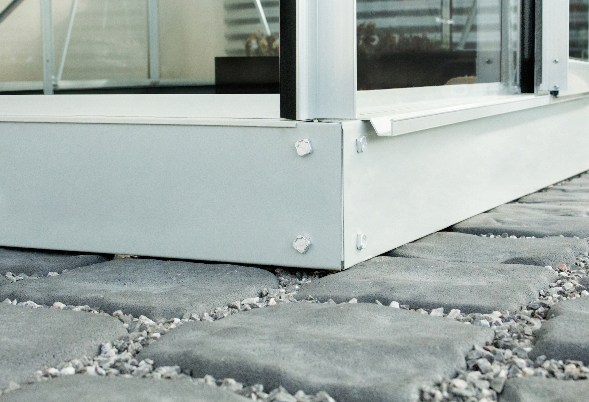Verzinkter und hellgrau lackierter Stahlfundamentrahmen|Maße (LxB): 3,8 qm – 195 x 195 cm 5,0 qm – 195 x 257 cm 6,2 qm – 192 x 321 cm