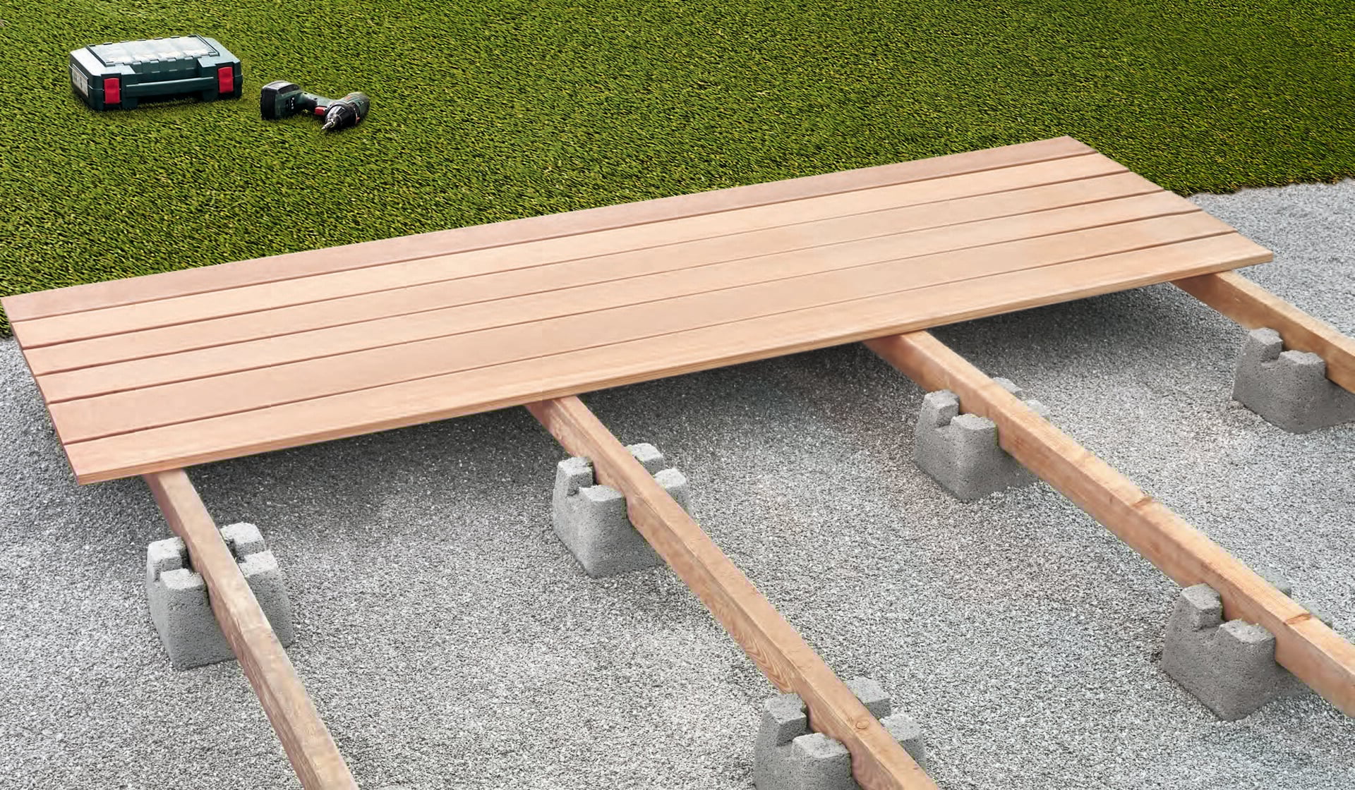 Der Diephaus Fundamentstein ist einfach und schnell Verlegt. Er ist ausgelegt für Traghölzer in 5 und 7 cm Breite.