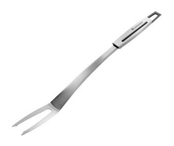 Die Gabel, in markantem Design, besticht durch eine verbesserte Ergonomie verbunden mit attraktiver Materialkombination zwischen Griffstück und Gabelspießen. Sie besteht aus hochwertigem, gebürsteten Edelstahl, mit Rostfrei-Siegel für eine langjährige Nutzung. Die Aufhängevorrichtung kann doppelt verwendet werden – Anhängen- oder Hakenposition.