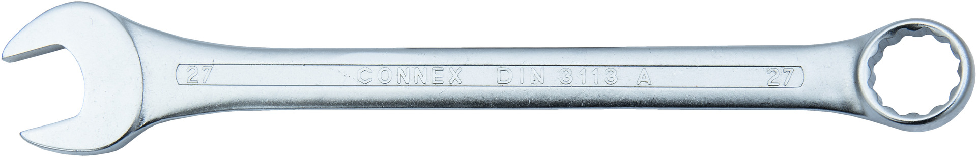 Der praktische Gabelringschlüssel aus dem Hause CONNEX ist eine ideale Ergänzung für jeden Werkzeugkasten. Dank der abgewinkelten Form können Sie leicht und ohne großen Kraftaufwand Sechskantschrauben sowie -muttern festziehen und lösen. Das Produkt wurde gemäß der DIN 3113-A hergestellt und besteht aus robustem Chrom-Vanadium-Stahl. In unserem Onlineshop finden Sie den Gabelringschlüssel in unterschiedlichen Größen.