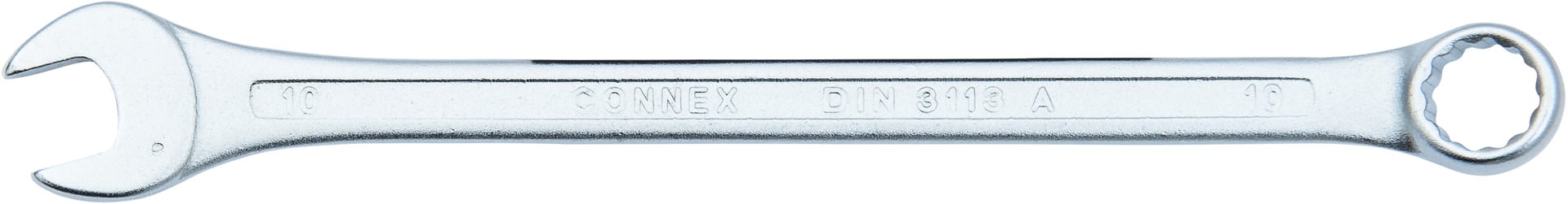 Der Gabelringschlüssel aus dem Hause CONNEX ist die ideale Ergänzung für Ihren Werkzeugkasten. Mit dem Schlüssel können Sie dank des abgewinkelten Kopfs Sechskantschrauben sowie Muttern mühelos festziehen oder lösen. Auch an schwer erreichbaren Stellen ist dies kein Problem. Das Produkt wurde gemäß der DIN 3113-A gefertigt und besteht aus stabilem Chrom-Vanadium-Stahl. In unserem Onlineshop finden Sie das Modell in verschiedenen Größen.