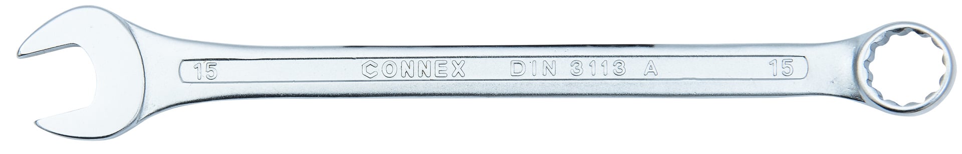 Der Gabelringschlüssel aus dem Hause CONNEX ist die ideale Ergänzung für Ihren Werkzeugkasten. Mit dem Schlüssel können Sie dank des abgewinkelten Kopfs Sechskantschrauben sowie Muttern mühelos festziehen oder lösen. Auch an schwer erreichbaren Stellen ist dies kein Problem. Das Produkt wurde gemäß der DIN 3113-A gefertigt und besteht aus stabilem Chrom-Vanadium-Stahl. In unserem Onlineshop finden Sie das Modell in verschiedenen Größen.