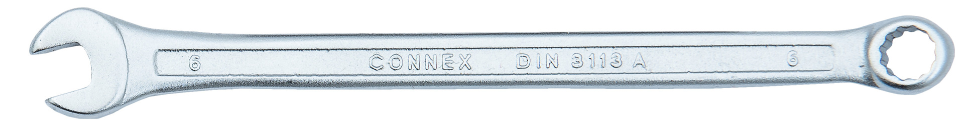 Der Gabelringschlüssel aus dem Hause CONNEX ist die ideale Ergänzung für Ihren Werkzeugkasten. Mit dem Schlüssel können Sie dank des abgewinkelten Kopfs Sechskantschrauben sowie Muttern mühelos festziehen oder lösen. Auch an schwer erreichbaren Stellen ist dies kein Problem. Das Produkt wurde gemäß der DIN 3113-A gefertigt und besteht aus stabilem Chrom-Vanadium-Stahl. In unserem Onlineshop finden Sie das Modell in verschiedenen Größen.