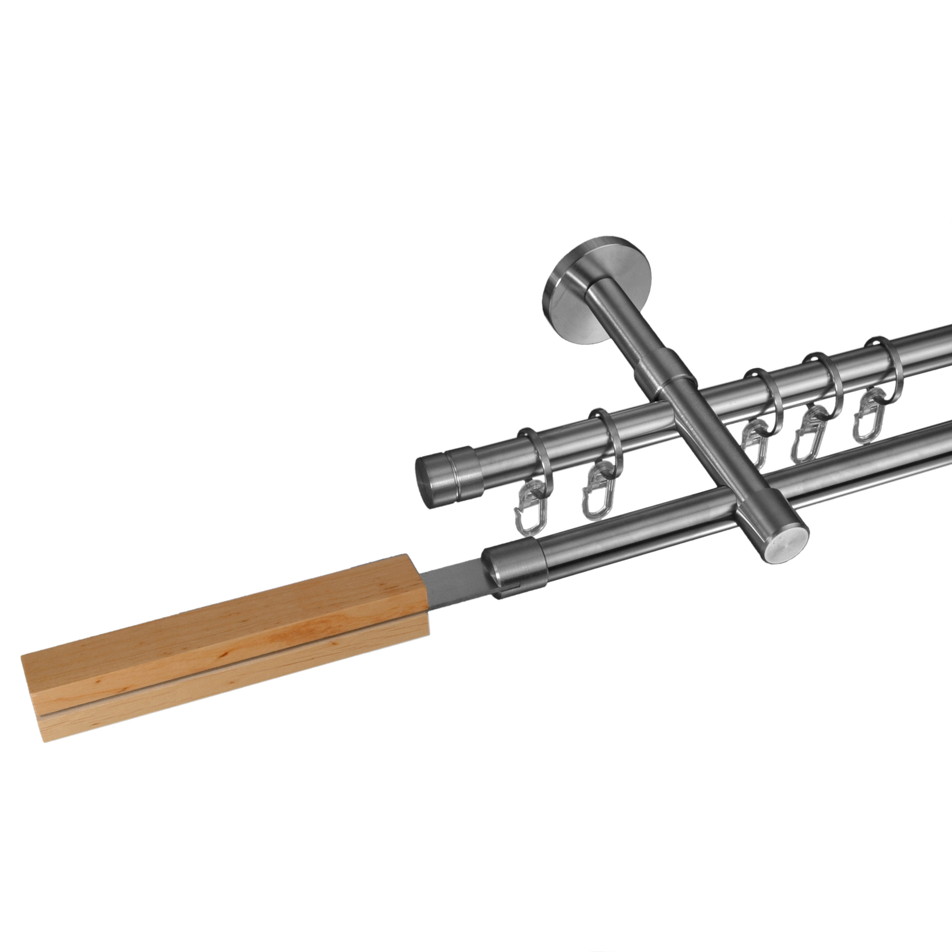 Dieses System besteht aus hochwertigem Edelstahl sowie dezenten Holzapplikationen, welche dieses Set sehr edel und individuell aussehen lassen. Diese Komplettsysteme enthalten alle nötigen Einzelteile zur Montage, um eine ansprechende Raumwirkung zu erzielen. Je größer der Durchmesser einer Gardinenstange ist, umso schwerer können in der Regel auch die Stoffe oder Stores sein, die man an ihnen befestigt.