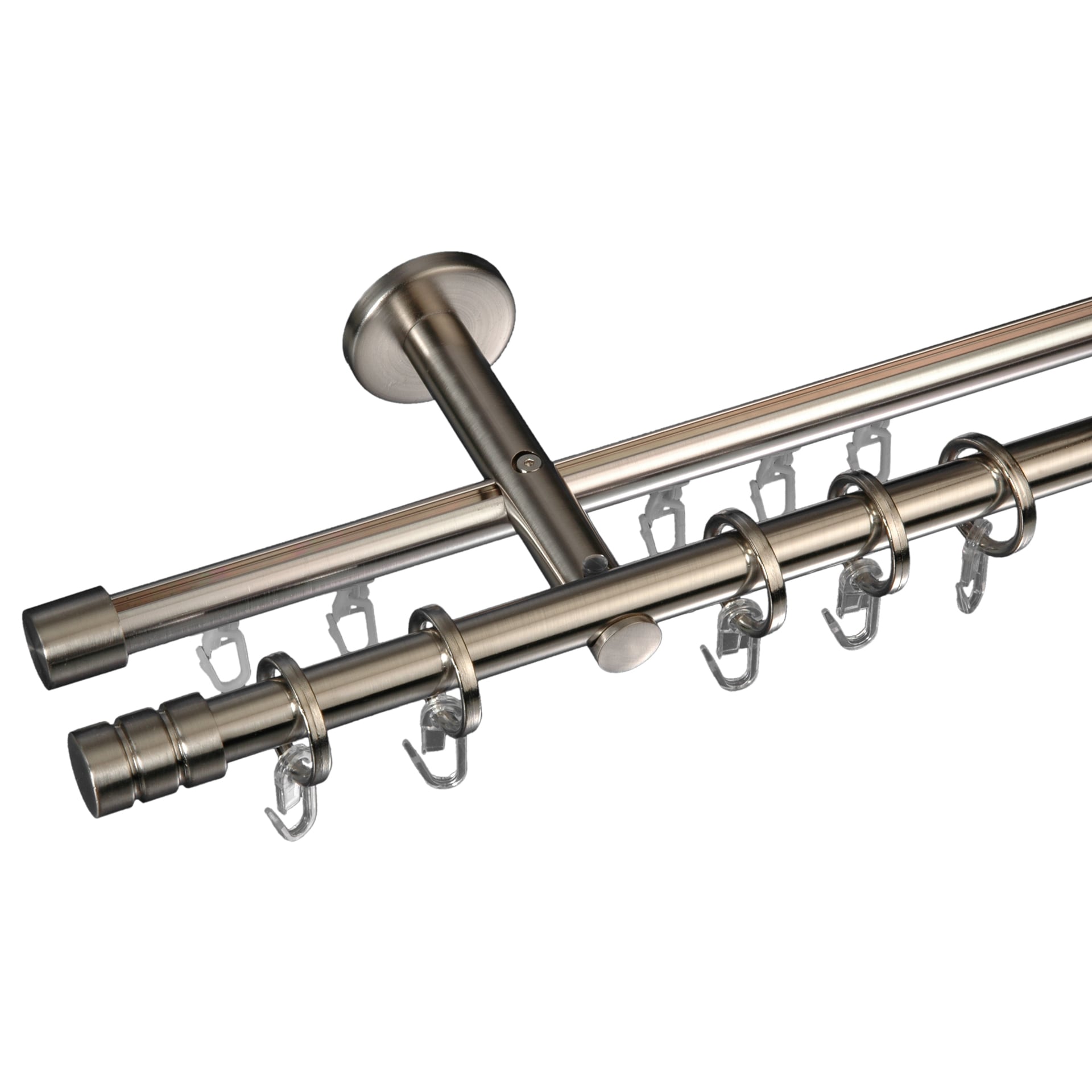 Dieses System kann mit einem Innenlaufrohr geliefert werden. In diesem Rohr werden dann Gleiter zum verschieben der Gardinen verwendet. Diese Komplettsysteme enthalten alle nötigen Einzelteile zur Montage, um eine ansprechende Raumwirkung zu erzielen. Je größer der Durchmesser einer Gardinenstange ist, umso schwerer können in der Regel auch die Stoffe oder Stores sein, die man an ihnen befestigt.
