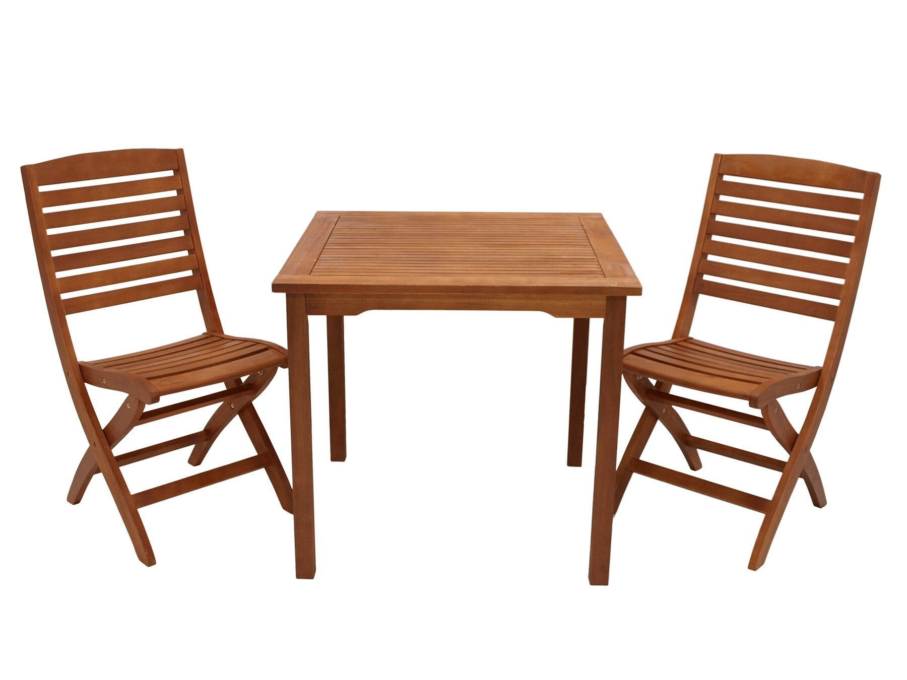 Gartengarnitur 3-teilig (2x Klappsessel, 1x Tisch 75x75cm quadratisch), Eukalyptus geölt.