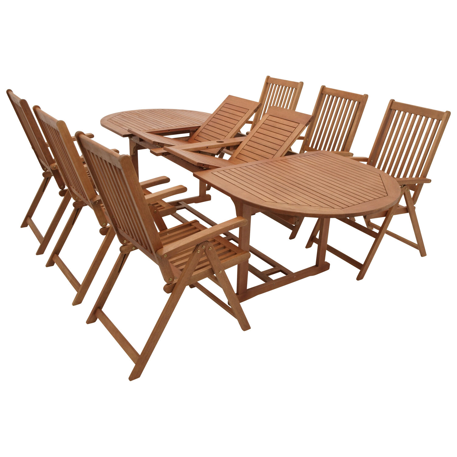 Garnitur Lago 7-teilig (3x Klappsessel Eukalyptus geölt, 1x Ausziehtisch 180/260x100cm, Eukalyptus geölt)