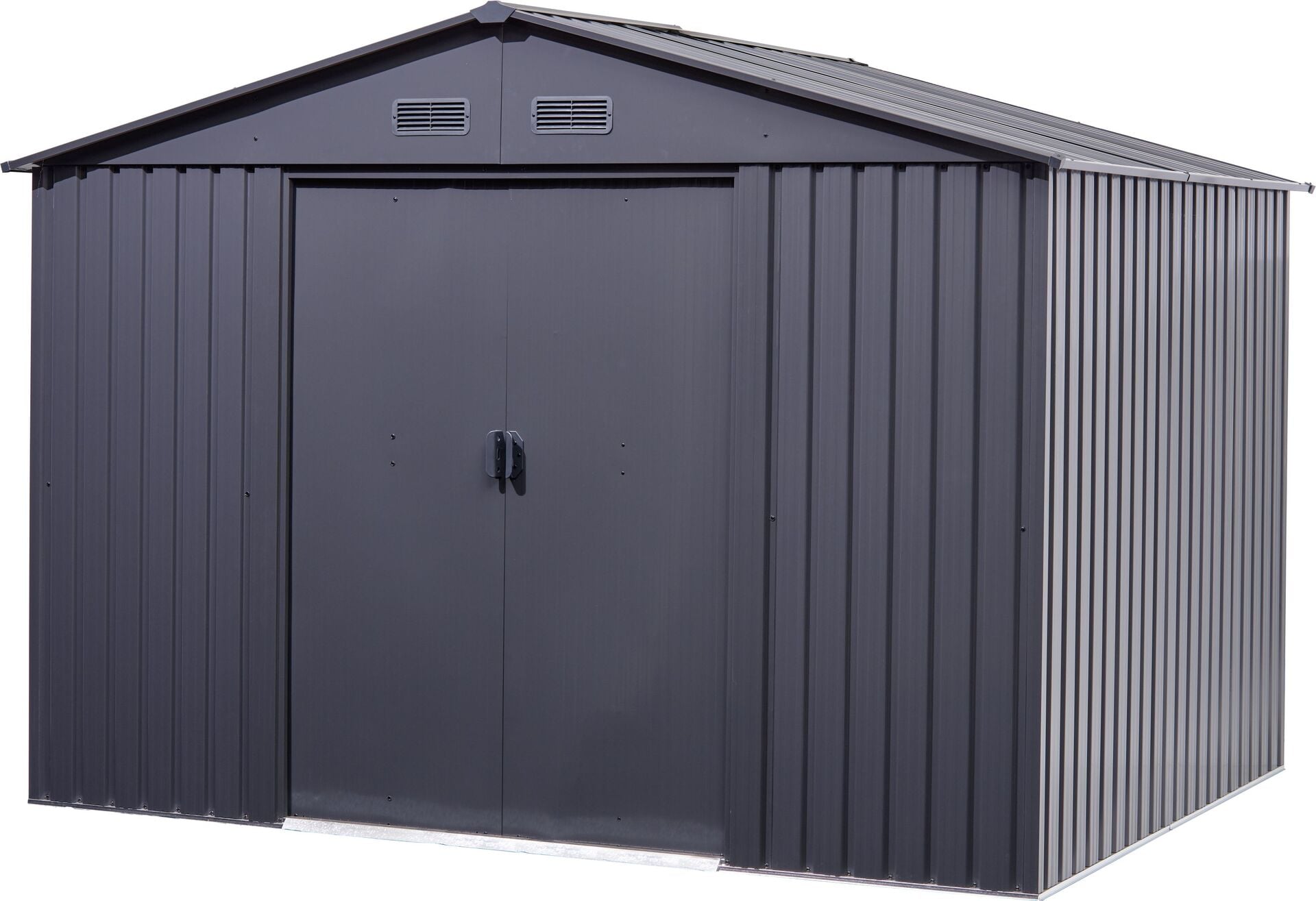 • Doppel-Schiebetür, Türgriffe aus Kunststoff, abschließbar (Vorhängeschloss nicht im Lieferumfang enthalten)