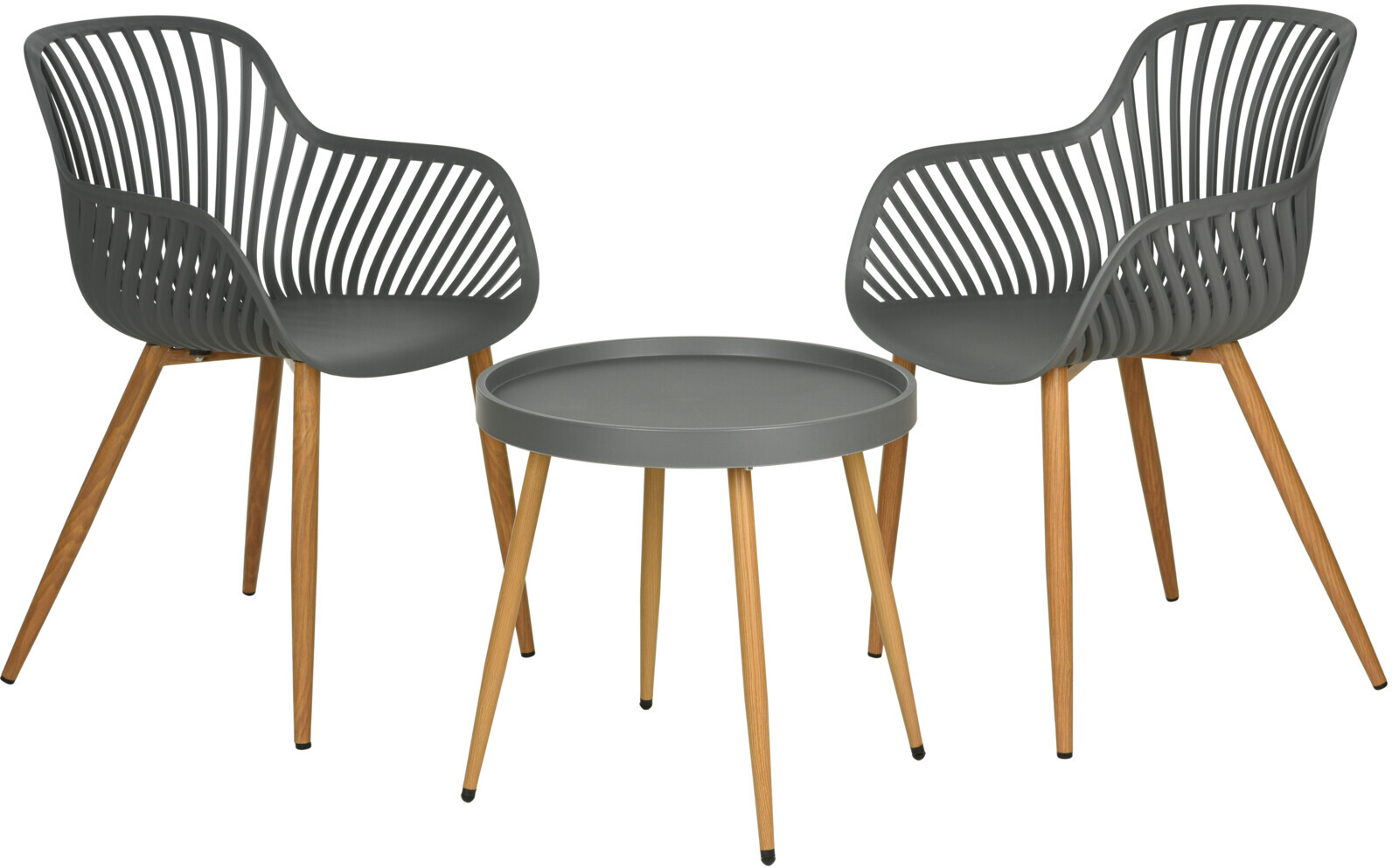 Möbelset 3tlg. (2 Stühle, 1 Tisch), Kunstsstoff, grau, Holzbeine
