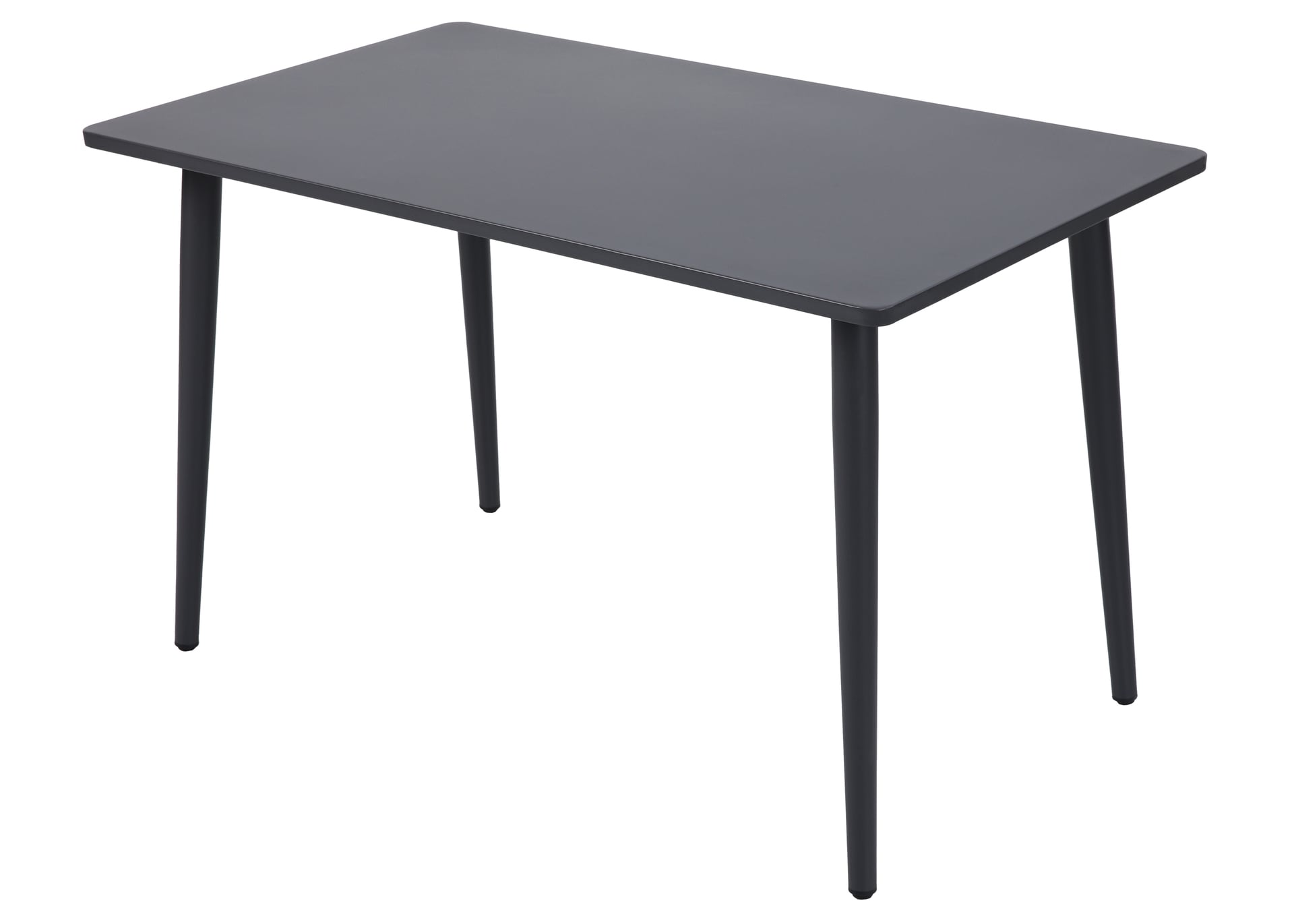 Bistrotisch aus Stahl quadratisch, Oberfläche dunkelgrau pulverbeschichtet.