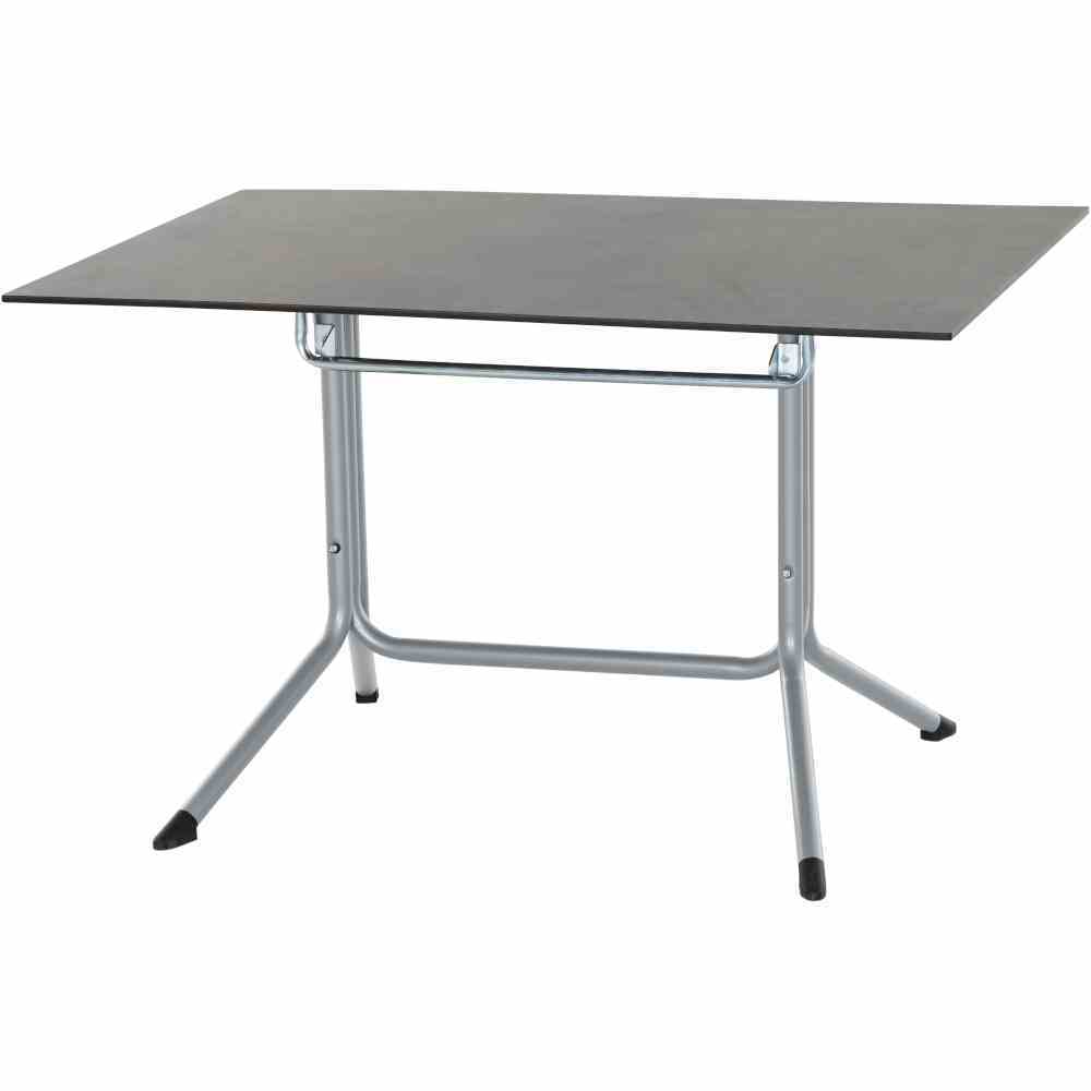 Gasto-Klapptisch Sola, 120x80x70 cm, Gestell aus Stahl pulverbeschichtet in silber, Tischplatte aus HPL 10 mm in dark stone, höhenverstellbar, Gastro-Untergestell