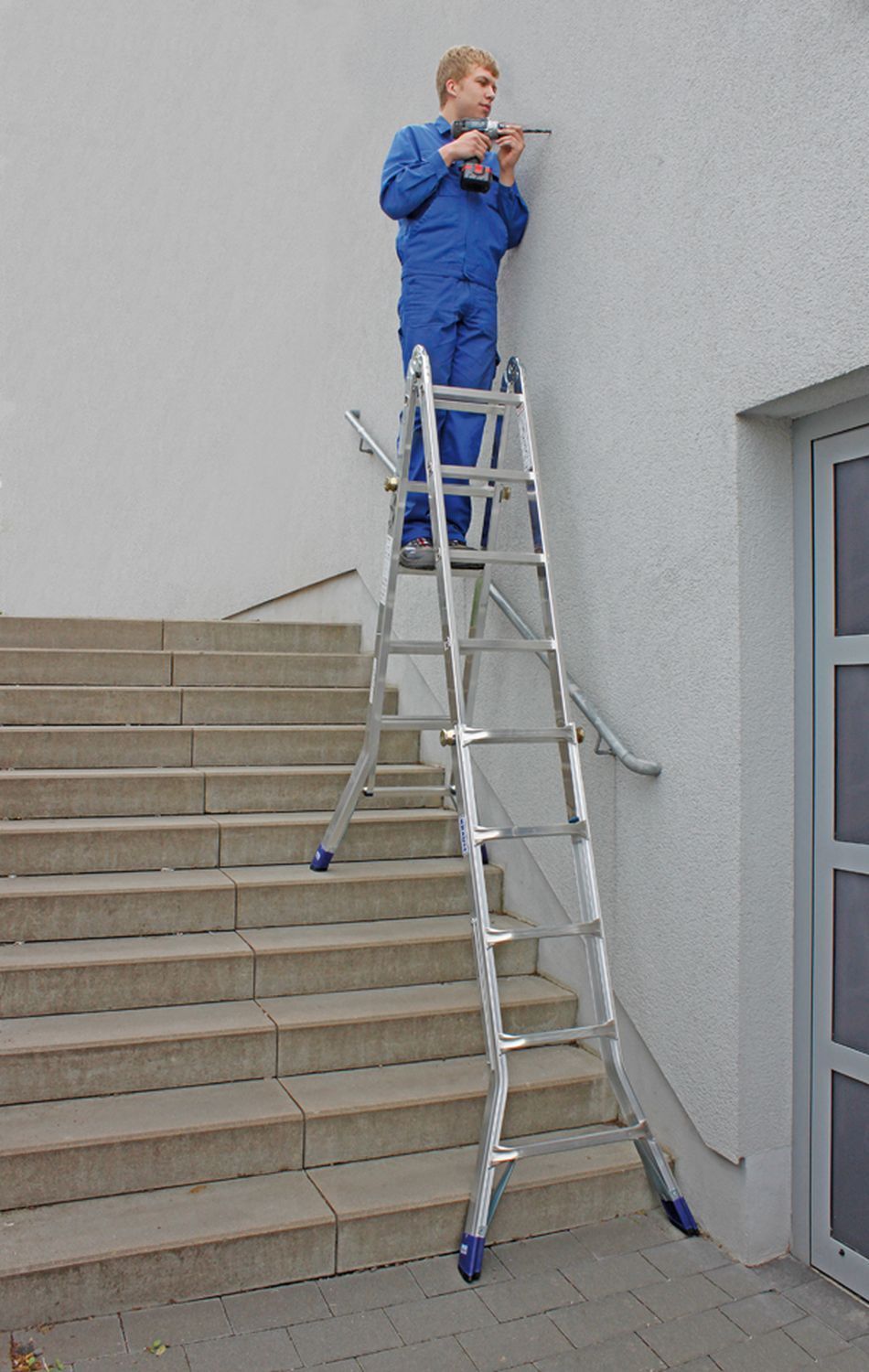 -Einsetzbar als Anlege-, Doppel-Stehleiter und Arbeitsbühne