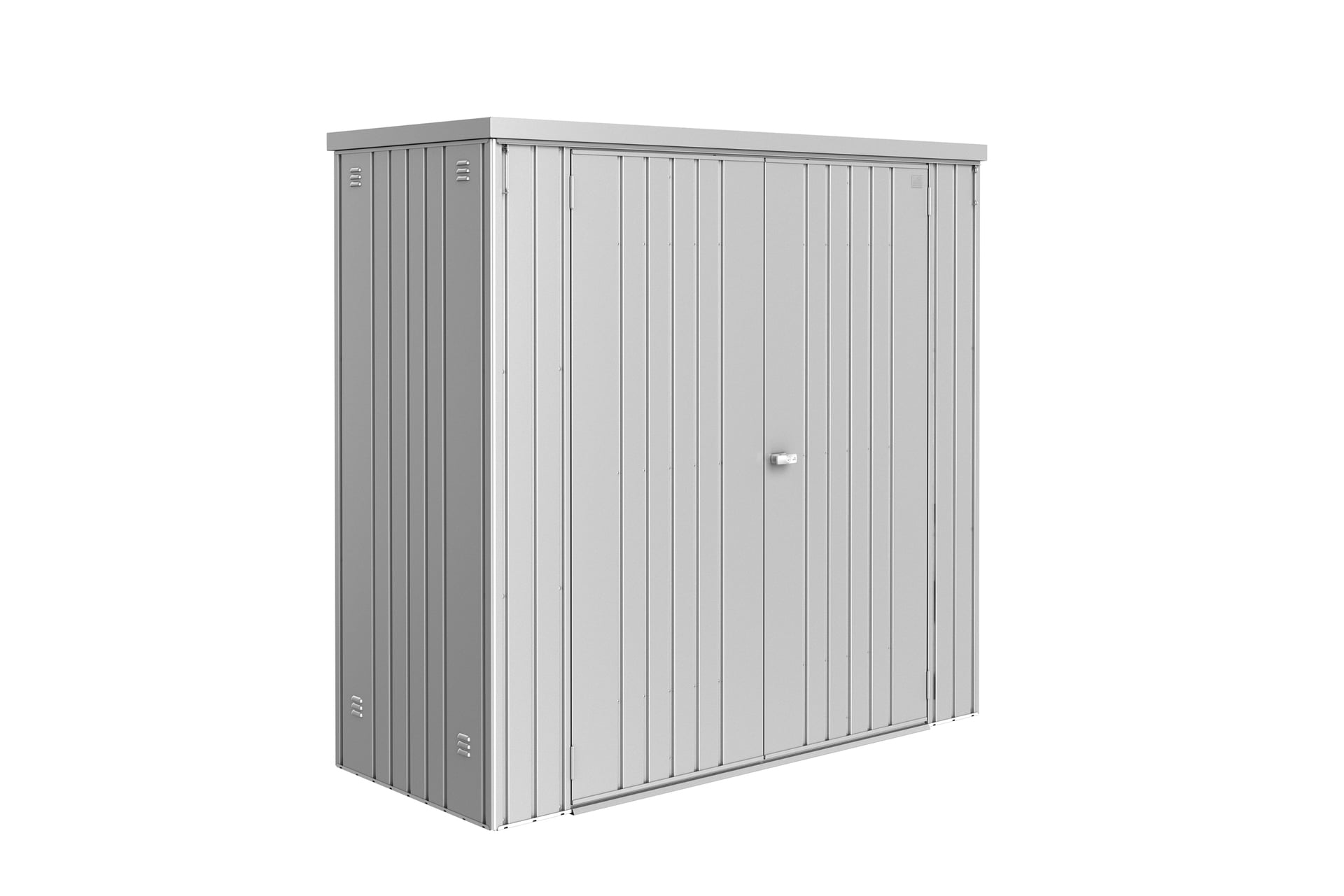 – Breite: 1900, – Farbe: silber-metallic, – Gewicht: 81,4, – Höhe: 1825, – Länge: 830, – Material: Stahl, – Produktart: Gerätehaus