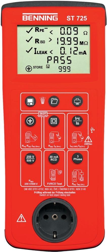 • Schutzleiter/ISO-Prüfspannung auf 250 V reduzierbar für Geräte mit Spannungsableiter