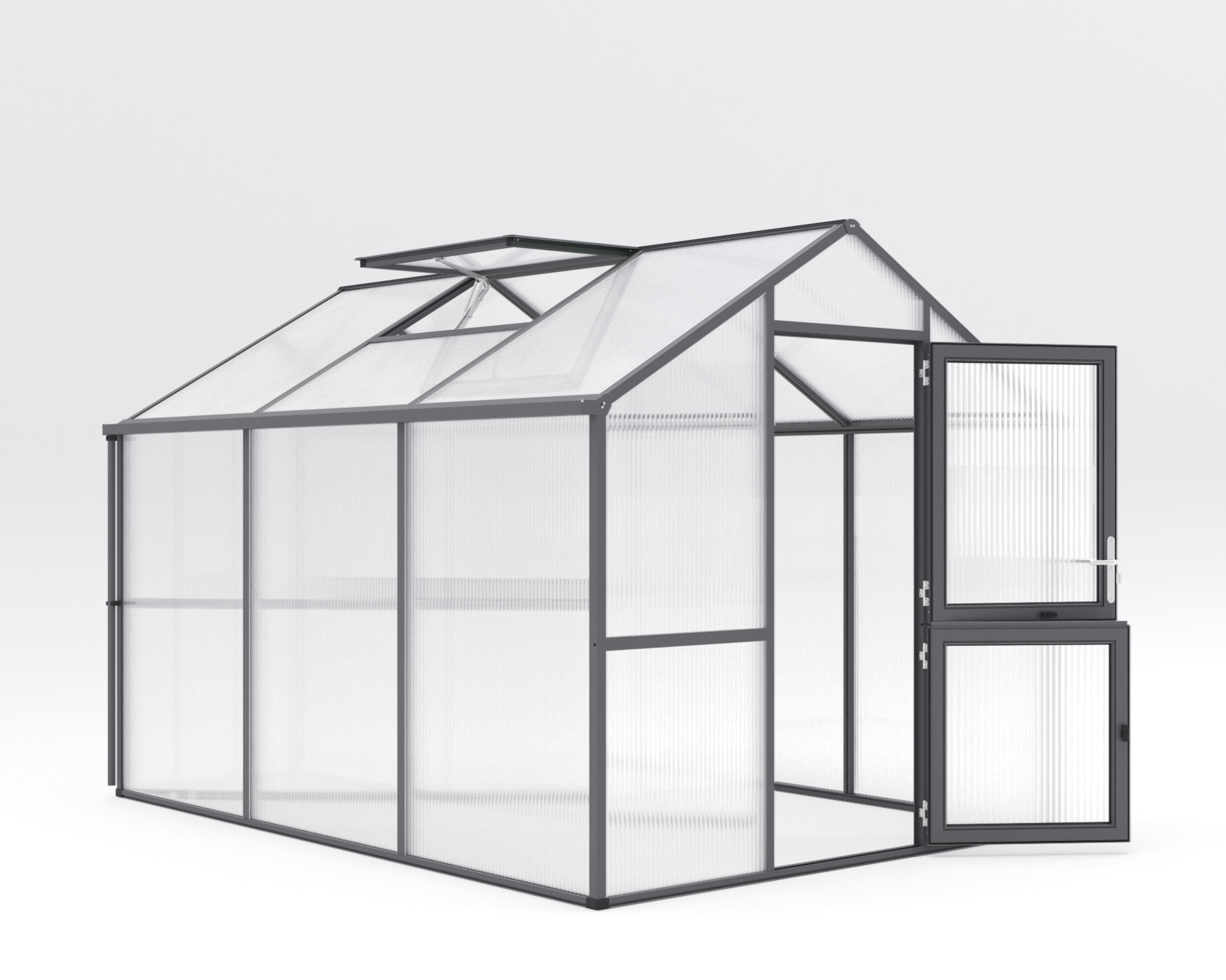 Iris ist mehr als nur ein Gewächshaus – es ist Ihr kreativer Raum, für Ihre Pflanzenanzucht und Pflege, in dem Sie Ihrer Gartenleidenschaft in vollem Umfang nachgehen können. Die Aluminiumkonstruktion des Gewächshauses Iris besticht durch ihre Stabilität und Langlebigkeit. Ohne störende Klammern und Kunststoffleisten strahlt es schlichte Eleganz aus. Dieses Gewächshaus wurde geschaffen, um Sie ganzjährig in jeder Pflanzphase zu begleiten. Dank der 16 mm ISO-Hohlkammerplatten sind Ihre Pflanzen auch bei kühleren Temperaturen gut geschützt. Die intelligente Belüftung vom Iris ermöglicht optimale Wachstumsbedingungen. Die breite, geteilte Drehtür bietet bequemen Zugang, während das großzügige Dachfenster mit automatischem Fensterheber für frische Luft sorgt. Das praktische Rückwandfenster mit Handaufsteller vervollständigt das ausgeklügelte Belüftungssystem. Die komfortable Stehwandhöhe von 1,60 m ermöglicht bequemes stehen und arbeiten in aufrechter Haltung. Von der Aussaat bis zur Ernte – Iris macht jede gärtnerische Aufgabe angenehm. Das Gewächshaus Iris bietet Ihnen nicht nur eine funktionale Umgebung. Wählen Sie zwischen den Farben “pressblank”, “tannengrün (RAL 6009)” und “anthrazit-grau (DB 703)” und verleihen Sie Ihrem Gewächshaus eine persönliche Note. Tauchen Sie ein und erleben Sie die Faszination des Gärtnerns in seiner schönsten Form.