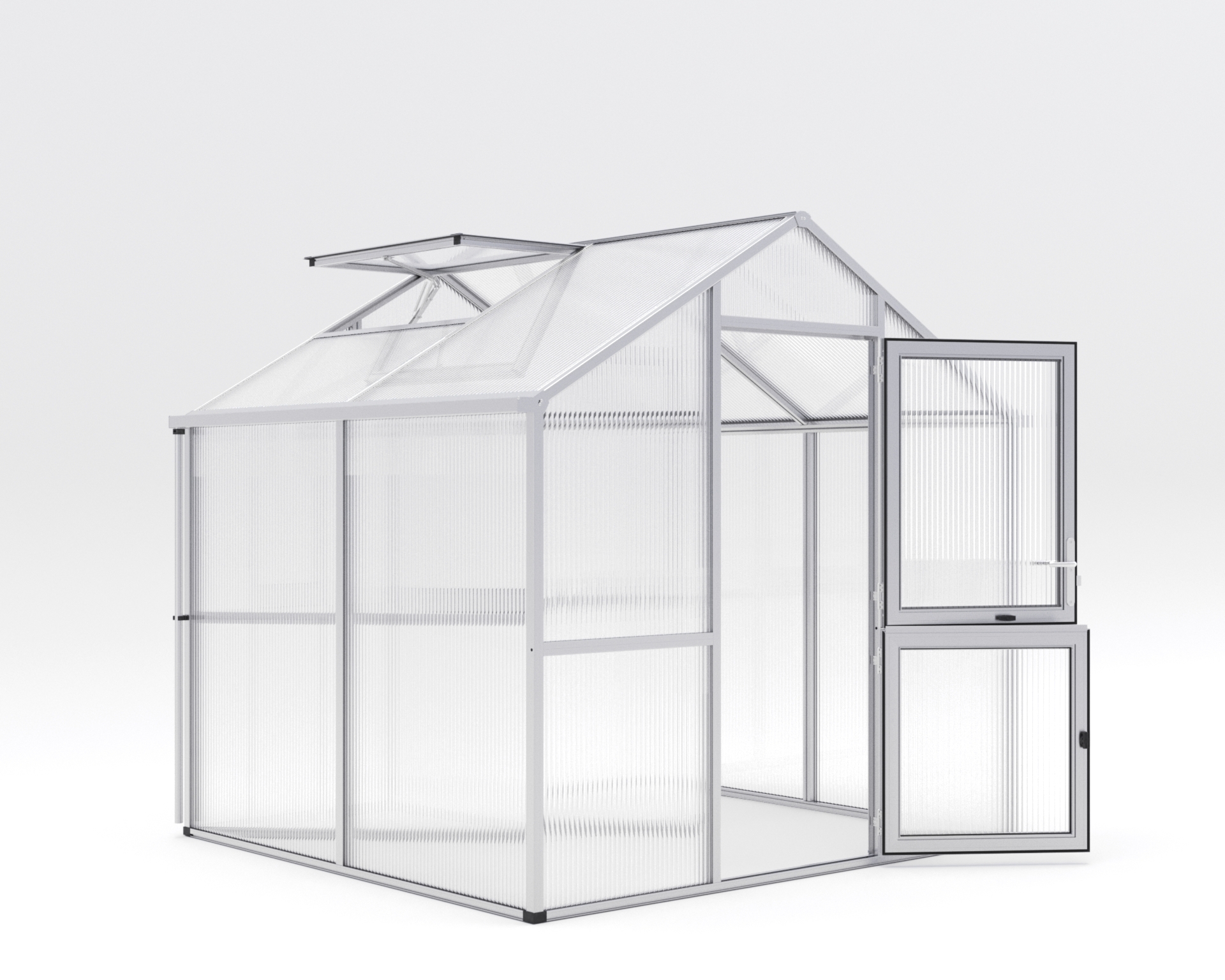 Iris ist mehr als nur ein Gewächshaus – es ist Ihr kreativer Raum, für Ihre Pflanzenanzucht und Pflege, in dem Sie Ihrer Gartenleidenschaft in vollem Umfang nachgehen können. Die Aluminiumkonstruktion des Gewächshauses Iris besticht durch ihre Stabilität und Langlebigkeit. Ohne störende Klammern und Kunststoffleisten strahlt es schlichte Eleganz aus. Dieses Gewächshaus wurde geschaffen, um Sie ganzjährig in jeder Pflanzphase zu begleiten. Dank der 16 mm ISO-Hohlkammerplatten sind Ihre Pflanzen auch bei kühleren Temperaturen gut geschützt. Die intelligente Belüftung vom Iris ermöglicht optimale Wachstumsbedingungen. Die breite, geteilte Drehtür bietet bequemen Zugang, während das großzügige Dachfenster mit automatischem Fensterheber für frische Luft sorgt. Das praktische Rückwandfenster mit Handaufsteller vervollständigt das ausgeklügelte Belüftungssystem. Die komfortable Stehwandhöhe von 1,60 m ermöglicht bequemes stehen und arbeiten in aufrechter Haltung. Von der Aussaat bis zur Ernte – Iris macht jede gärtnerische Aufgabe angenehm. Das Gewächshaus Iris bietet Ihnen nicht nur eine funktionale Umgebung. Wählen Sie zwischen den Farben “pressblank”, “tannengrün (RAL 6009)” und “anthrazit-grau (DB 703)” und verleihen Sie Ihrem Gewächshaus eine persönliche Note. Tauchen Sie ein und erleben Sie die Faszination des Gärtnerns in seiner schönsten Form.