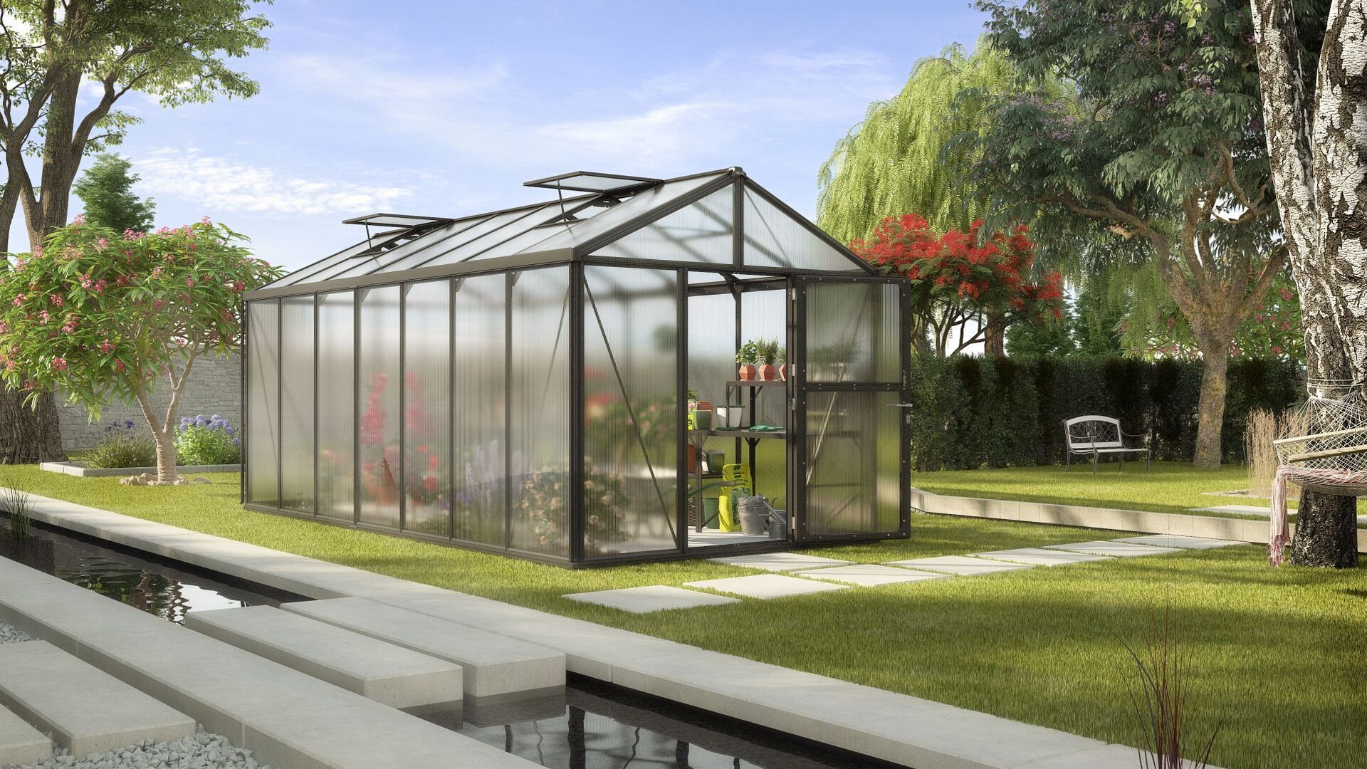 Profi-Gärtnern zu Hause: Auf über 15 m² bietet der König unter den Vitavia Gewächshäusern alles für das effiziente Gärtnern – ohne Kompromisse.
