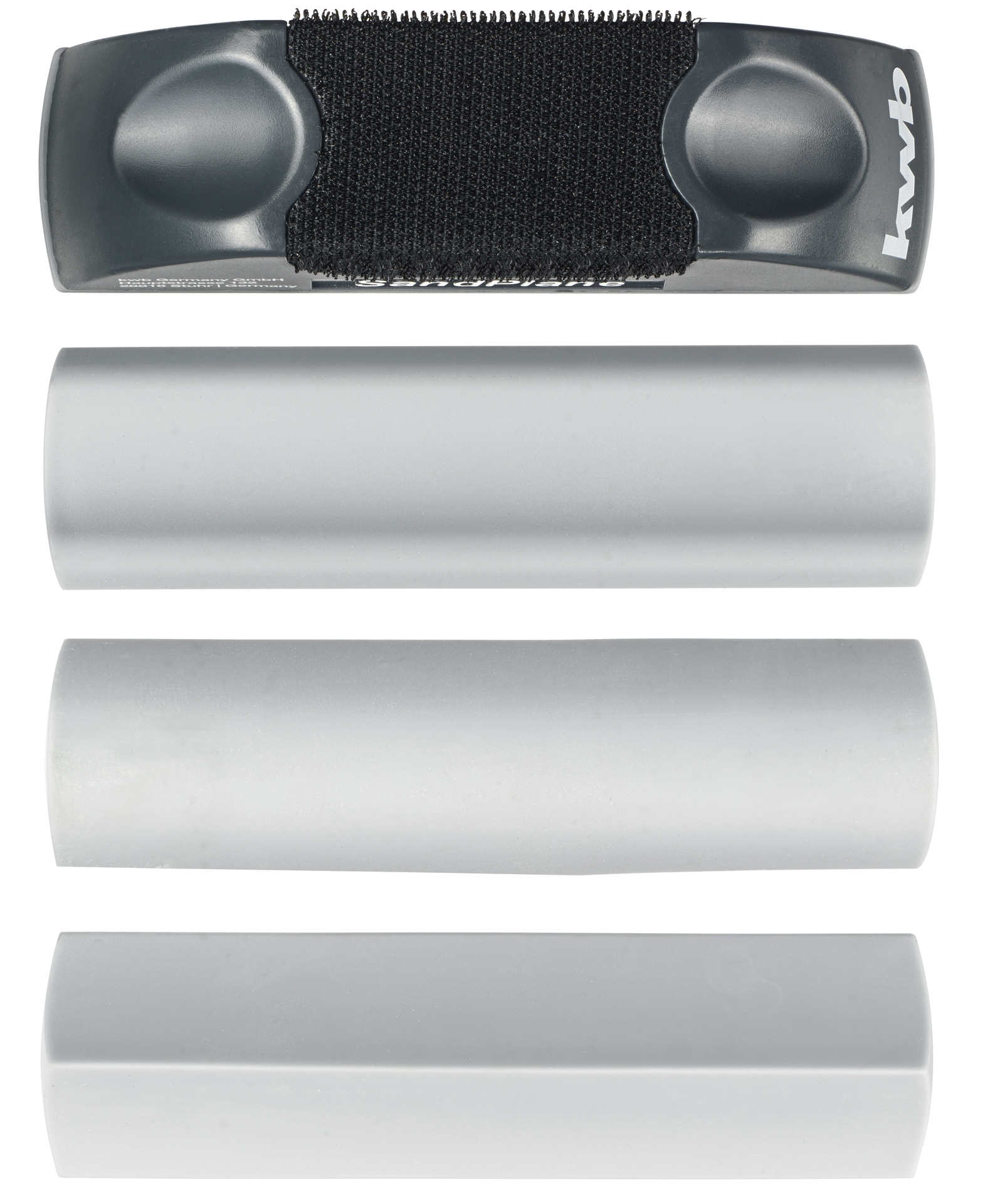 Mit dem kwb Handschleifer können nahezu alle Profile im Heimwerkerbereich und Möbelrestauration geschliffen werden. Denn der kwb Handschleifer ist mit vier unterschiedlichen, steckbaren Profilen ausgestattet. Dabei liegt der Handschleifer dank seiner beiden ergonomisch angepassten Fingermulden immer gut in der Hand und ist vor Verrutschen während der Arbeit sicher. Besonders einfach ist die Befestigung der 125 mm Schleifscheiben mittels Klettfunktion. Der kwb Handschleifer wird mittig über der Schleifscheibe positioniert, deren überstehende Seiten hochgeklappt und mittels Klettverschlusses am Handschleifer befestigt. Zusätzlich werden vier Edelkorund-Schleifscheiben mit einer Körnung von 120 im standardisierten Durchmesser von 125 mm mitgeliefert.Selbstverständlich können mit dem Handschleifer Schleifblätter mit anderen Körnungen im Durchmesser 125 mm und mit Klettverschluss verwendet werden.