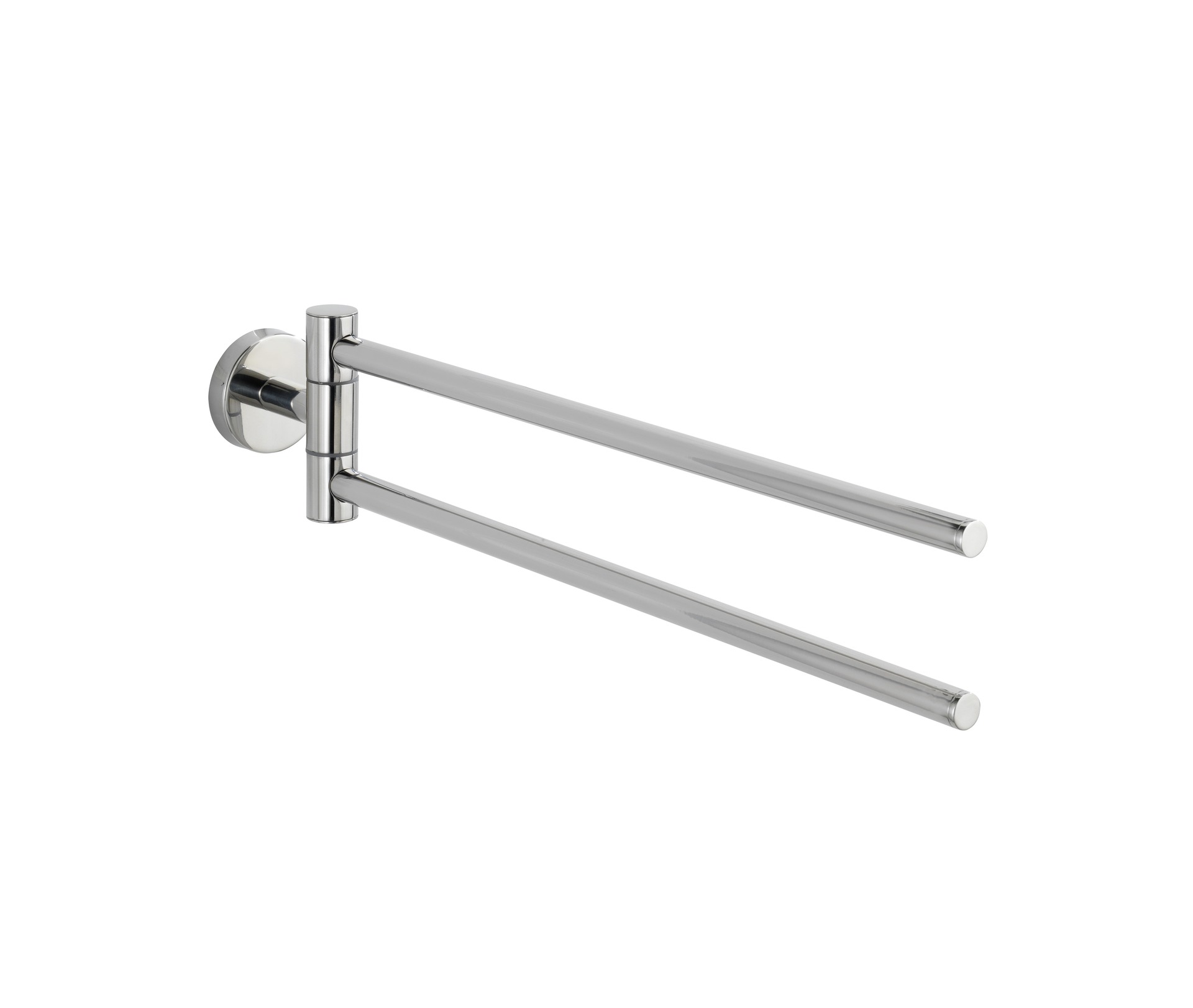 Die optimale Kombination aus Funktionalität und Qualität – der dezente Handtuchhalter löst schnell und einfach das Problem fehlender Aufhängemöglichkeiten bei wenig Platz im Badezimmer. Er benötigt zur Anbringung wenig Raum und die beiden übereinanderliegenden, beweglichen, runden Arme bieten ausreichend Platz für zwei Handtücher.