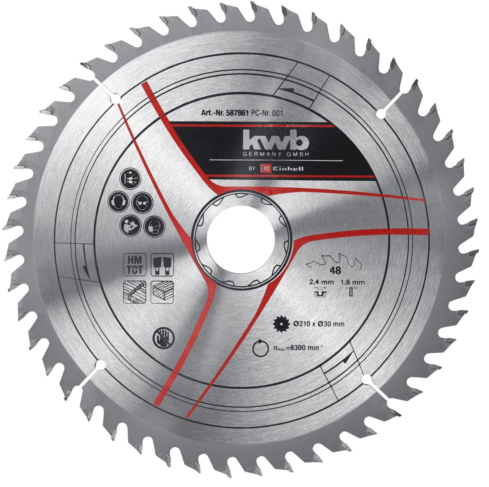 Hartmetall (TCT) Sägeblatt mit 48 Sägezähnen, Blattdurchmesser 210mm, Bohr-Durchmesser 30mm und einer Stärke von 1, 6mm. Geeignet für Hart-, Sper- und Weichholz, Holzverbundstoffe und PVC. Passend für Einhell Tischkreissäge TC-TS 1200; Zug-Kapp-Gehrungssäge TE-SM 36/210, TE-SM 2131 Dual; TC-SM 2131/1 Dual, TC-SM 2131 Dual; Kapp-Gehrungssäge TE-MS 18/210, TC-MS 2112, TC-MS 2112 T