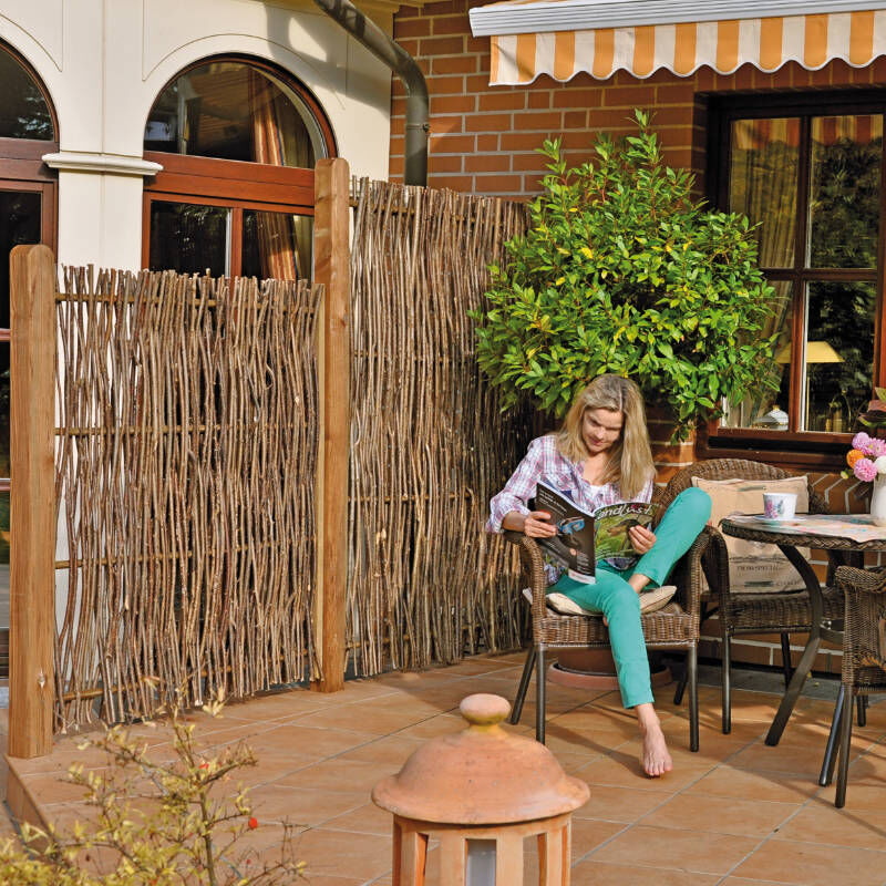 Der PEPE-Haselnusszaun ist ideal, wenn du dir im Garten mehr Privatsphäre wünschst und dabei eine natürliche, rustikale Optik behalten willst. Die geflochtenen Haselnussruten wirken warm und lebendig und passen besonders gut zu Naturgärten, Landhausstil und grünen Grundstücksgrenzen. Durch die stabile Ausführung und den seitlichen Rahmen entsteht ein Zaunelement, das sich als Sichtschutz an der Terrasse, als Abgrenzung am Beet oder entlang der Grundstücksgrenze einsetzen lässt. Du bekommst den PEPE in drei Größen, damit du die passende Höhe für dein Projekt wählen kannst. Technische Daten Material Haselnussruten Rahmen Seitlicher Rahmen ca. 45 x 25 mm Ausführung Stabile Ausführung Querstab Braun gebeizt, Ø 25 mm Farbe Natur Zaunmaße B x H 180 x 180 cm, 120 x 180 cm, 120 x 140 cm Irrtümer oder Änderungen vorbehalten.