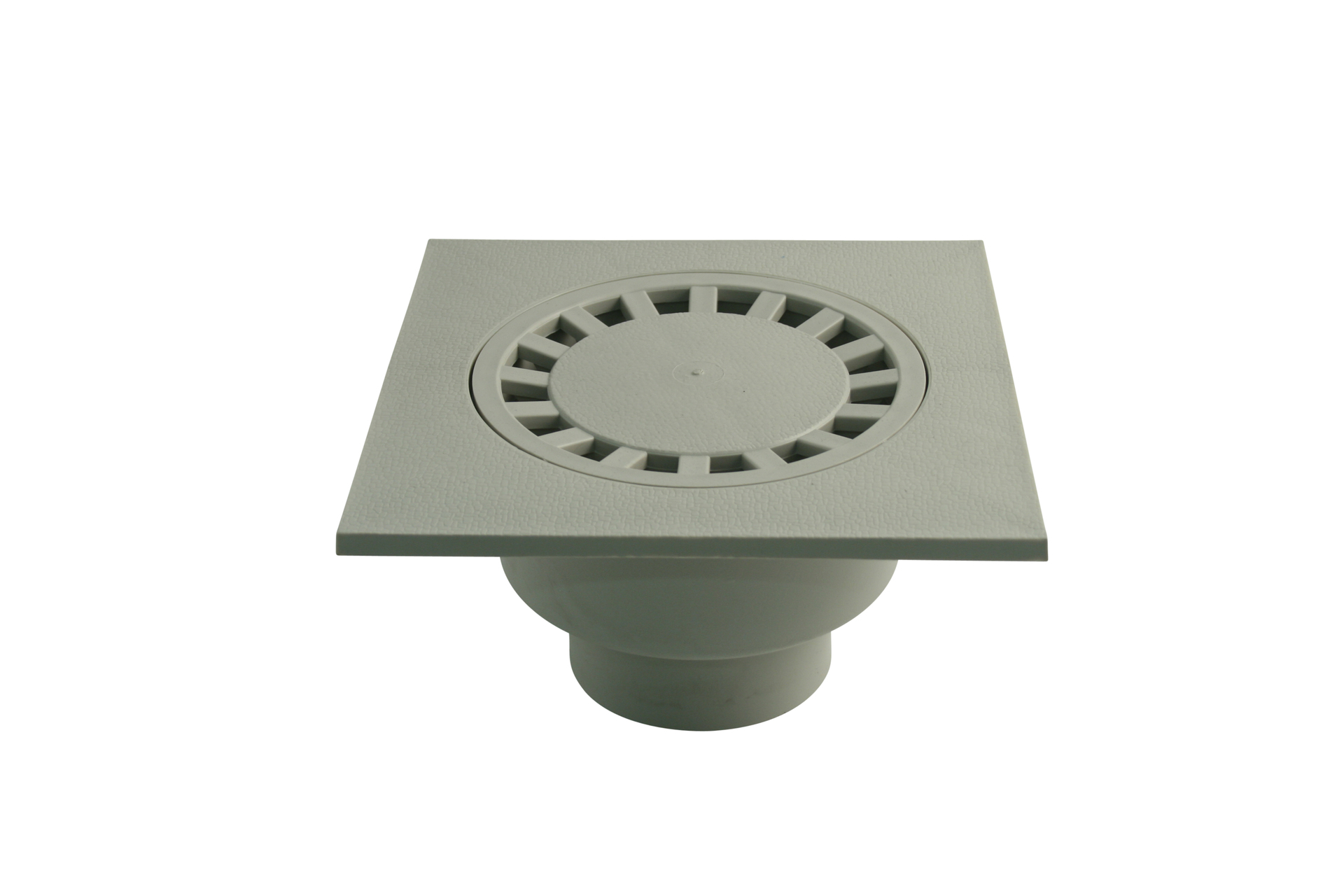 Haus- und Hofablauf mit Kunststoffrost, grau, schlagfest, temperaturbeständiger, säure- und laugenbeständiger Kunststoff aus PP (Polypropylen), senkrechter Anschluss an HT/KG (Muffe), mit Geruchsverschluss. Der Ablauf ist belastbar bis 1,5 t.