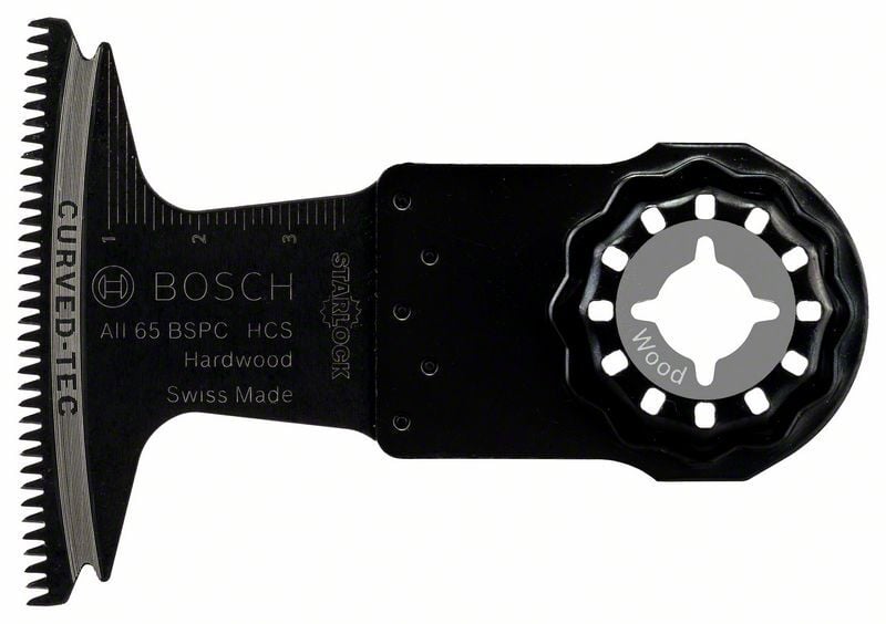 Das Tauchsägeblatt Starlock AII 65 BSPC ermöglicht breite und saubere Schnitte in Hartholz. Seine dreidimensionale japanische Zahnanordnung besteht aus scharfgeschliffenen Zähnen, die ideal für das Sägen von Hartholz geeignet sind. Diese Zahnanordnung minimiert die Wärmeentwicklung und ermöglicht ausrissfreie Schnitte ohne Auszackung oder Hitzespuren. Die flache Blattgestaltung reduziert Lateralschwingung und ermöglicht mittels direkter Kraftübertragung präzise Schnitte. Dieses Produkt wird verwendet für das Tauchsägen in Hartholz oder Holzbrettern sowie das Sägen von Holzpaneelen. Dieses Produkt wird verwendet mit allen Elektrowerkzeugen des Typs Starlock, Starlock Plus und Starlock Max sowie allen gängigen Multifunktionswerkzeugen. Die abgerundete Blattspitze (Curved-Tec) ermöglicht präzise und glatte Tauchschnitte. Das Starlock-Aufnahmesystem ermöglicht einen schnellen Blattwechsel ohne Blattberührung in drei Sekunden. Das Aufnahmesystem ermöglicht durch seine dreidimensionale enge Passung maximale Kraftübertragung zwischen Maschine und Zubehör. Werkstoff: HCS, Breite [mm]: 65, Eintauchtiefe [mm]: 40