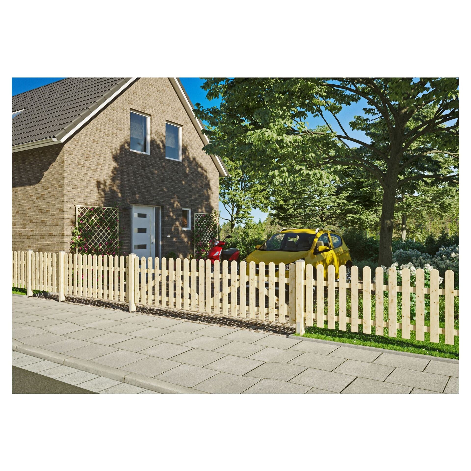Der HEIKO-Gartenzaun ist dem klassischen Friesenzaun nachempfunden. Gerade Zaunlatten mit gerundeten Köpfen werden aus grün druckimprägniertem Kiefer/Fichte-Holz gefertigt. Die Latten sind ca. 20 x 90 mm, glatt, die Riegel ca. 25 x 70 mm. Alle Verbindungen sind genagelt (verzinkt). Achtung: Biozidprodukte vorsichtig verwenden. Vor Gebrauch stets Etikett und Produktinformationen lesen.