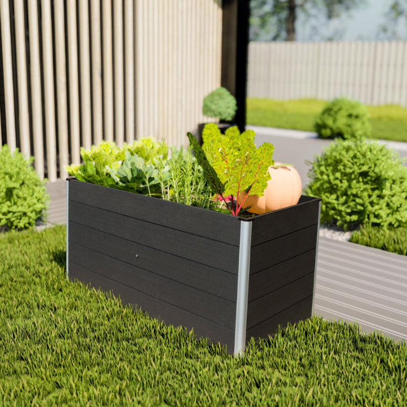 ERNA Hochbeet – langlebig, pflegeleicht und modern Robuste Materialien für dauerhafte Gartenfreude Das ERNA Hochbeet besteht aus hochwertigem WPC (Wood Plastic Composite) in Kombination mit stabilen Aluminium-Eckprofilen. Diese Materialkombination macht das Hochbeet besonders witterungsbeständig, langlebig und pflegeleicht – ideal für den Einsatz im Außenbereich. Großzügig bepflanzen – Gemüse, Kräuter und mehr Mit einem Volumen von ca. 780 Litern und den Maßen 150 x 70 x 75 cm bietet das ERNA Hochbeet reichlich Platz für verschiedenste Bepflanzungen. Egal ob du frische Kräuter, aromatisches Gemüse oder bunte Blumen ziehen möchtest – hier findest du optimale Bedingungen für gesundes Pflanzenwachstum. Modernes Design in edlem Anthrazit Das dezente Design in Anthrazit fügt sich harmonisch in moderne Garten- und Terrassengestaltungen ein. Die klare Linienführung und die robuste Konstruktion vereinen Funktionalität und Ästhetik. Technische Daten: Material: WPC mit Aluminium-Eckprofilen Farbe: Anthrazit Maße: 150 x 70 x 75 cm (L x B x H) Fassungsvermögen: ca. 780 Liter inkl. Montagematerial