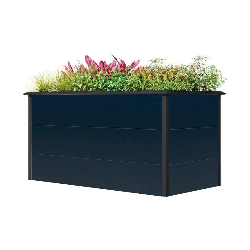 Hochbeet EVA – Metall, anthrazit, 150 × 75 × 77 cm Robustes Hochbeet mit integriertem Schneckenschutz Das EVA Metall-Hochbeet kombiniert Funktionalität, Langlebigkeit und stilvolles Design. Gefertigt aus verzinktem und pulverbeschichtetem Stahl in elegantem Anthrazit, bietet es mit seinen großzügigen Maßen von 150 × 75 × 77 cm und einem Fassungsvermögen von ca. 780 Litern reichlich Platz für Gemüse, Kräuter oder Zierpflanzen. Produktdetails Material: verzinkter, pulverbeschichteter Stahl Farbe: Anthrazit Maße: 150 × 75 × 77 cm Fassungsvermögen: ca. 780 Liter Inklusive Schneckenschutzkante Langlebig, pflegeleicht und stabil Dank der hochwertigen Materialien ist das Hochbeet äußerst widerstandsfähig gegen Witterungseinflüsse und Korrosion. Die Pulverbeschichtung sorgt zusätzlich für eine elegante Optik und schützt das Metall vor Kratzern und Abnutzung. Schutz vor ungebetenen Gästen Die integrierte Schneckenschutzkante verhindert zuverlässig, dass Schnecken ins Beet gelangen. So bleiben deine Pflanzen vor diesen Schädlingen geschützt und können ungestört wachsen. Viel Platz für kreative Bepflanzung Mit seinem großen Fassungsvermögen eignet sich das EVA Hochbeet perfekt für abwechslungsreiche Bepflanzungen – ob Kräuter, Gemüse oder dekorative Blumen. Es bietet die ideale Arbeitshöhe für bequemes, rückenschonendes Gärtnern.