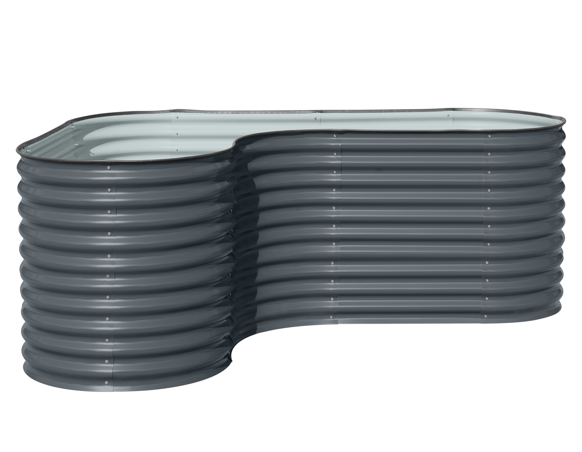 Dieses Modell aus der Grow Faster Serie punktet durch neues Design in geschwungener L-Form, und kommt – wie auch die anderen Modelle – ganz ohne Ecken und Kanten aus. Alle Montageteile bestehen aus galvanisch verzinktem Stahlblech, und sind so vorbereitet, dass du sie problemlos und ohne Vorkenntnisse zusammenbauen kannst. Die angenehme Höhe des Hochbeets ermöglicht dir rückenschonenden Gärtnerkomfort, und trägt außerdem zur besseren Erwärmung der Erde bei — so wird für ein besseres Wachstum deiner Pflanzen gesorgt. Ein weiterer Vorteil: Für ein Hochbeet braucht es keinen eigenen Garten. Da nur wenig Platz benötigt wird, ist auch das Gärtnern auf dem eigenen Balkon oder der Terrasse möglich — der Bepflanzung des Hochbeets sind dir dabei keine Grenzen gesetzt. Das Hochbeet eignet sich auch hervorragend als individuelle Grundstücksbegrenzung, und ist somit dekorativ und praktisch zugleich.