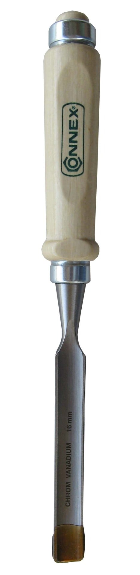 Der Stechbeitel von CONNEX hat ein Ulmer Heft aus Weißbuche und einen Schlagring aus Metall. Dieser ermöglicht das Arbeiten mit dem Schreiner-Klüpfel. Die Klinge besteht aus Chrom-Vanadium-Stahl mir gefasten Seiten. Ideal zum Herausarbeiten von Rundungen in Holz.