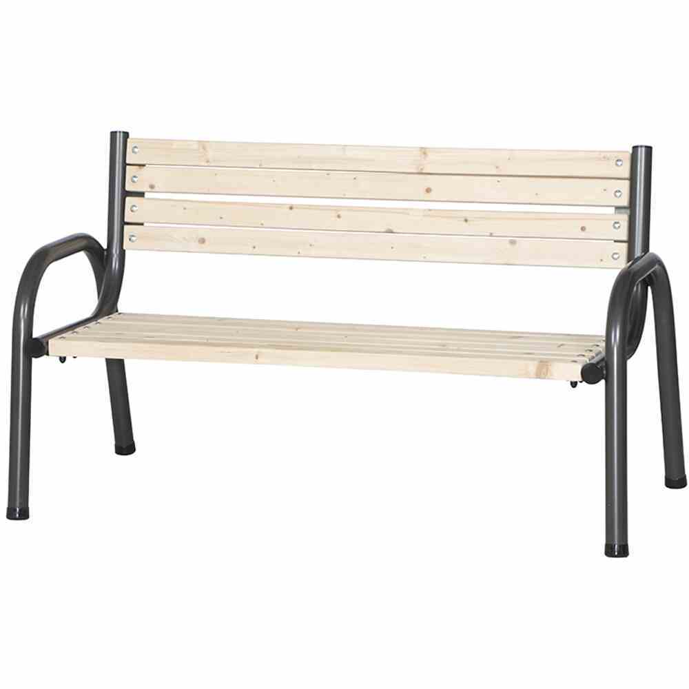 3er Bank Park, 77x150x84 cm, Gestell aus Stahl unterverzinkt + pulverbeschichtet in anthrazit, Flächen aus Kiefernholz in natur