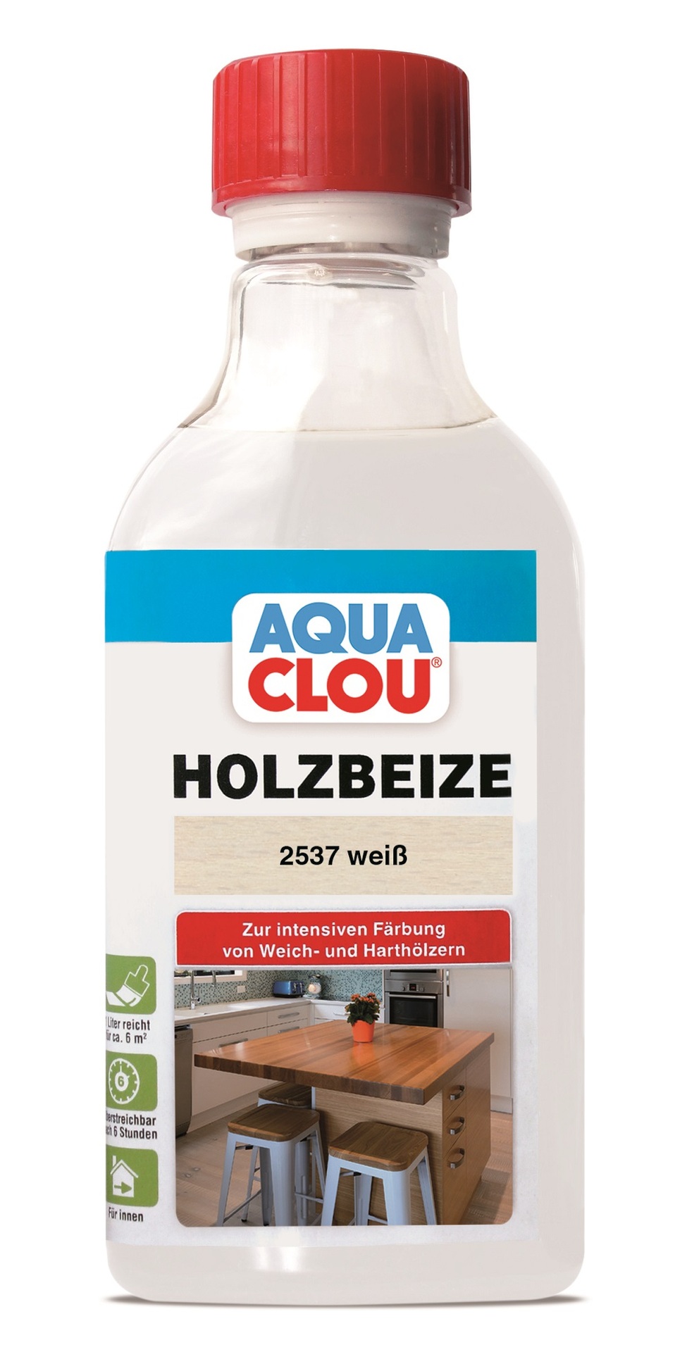 Wässrige, gebrauchsfertige und umweltschonende Pigmentbeize auf Acrylatbasis mit intensiver Porenbeizung. Durch spezielle Bindemittelzusätze werden die Pigmente sehr gut auf der Holzoberfläche fixiert, so dass sich diese Beize für das Überlackieren sowohl mit wasserverdünnbarer als auch mit lösemittelhaltigen CLOU Holzlacken eignet. Die Behandlung der gebeizten Fläche mit CLOU Holzölen ist ebenfalls möglich. Aufgrund des hohen Pigmentanteils ist AQUA CLOU Holzbeize besonders lichtecht, das Holz wird gleichmäßig eingefärbt und das Strukturbild bleibt vollständig erhalten. Für die farbige Gestaltung von rohen Holzoberflächen im gesamten Innenbereich, z. B. Möbel, Innentüren, profilierte Teile, Leisten. AQUA CLOU Holzbeize ist sowohl fürfeinporige Holzarten wie Ahorn, Birke, Buche, Erle und Kirschbaum als auch für grobporige Holzarten wie Eiche, Esche, Mahagoni und Nussbaum geeignet.