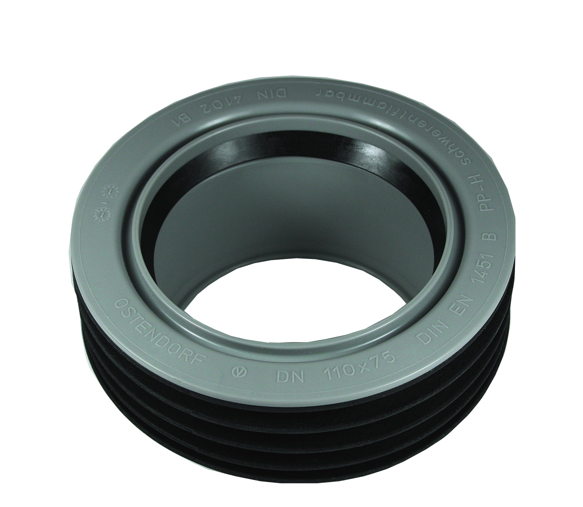 HT Innenreduktion für den Anschluss von HT-Rohren DN 75 an Rohrenden DN 110. Die Innenreduzierung ist der Problemlöser bei Rohren mit abgesägter oder beschädigter Muffe. Entspricht der DIN 1451-1.