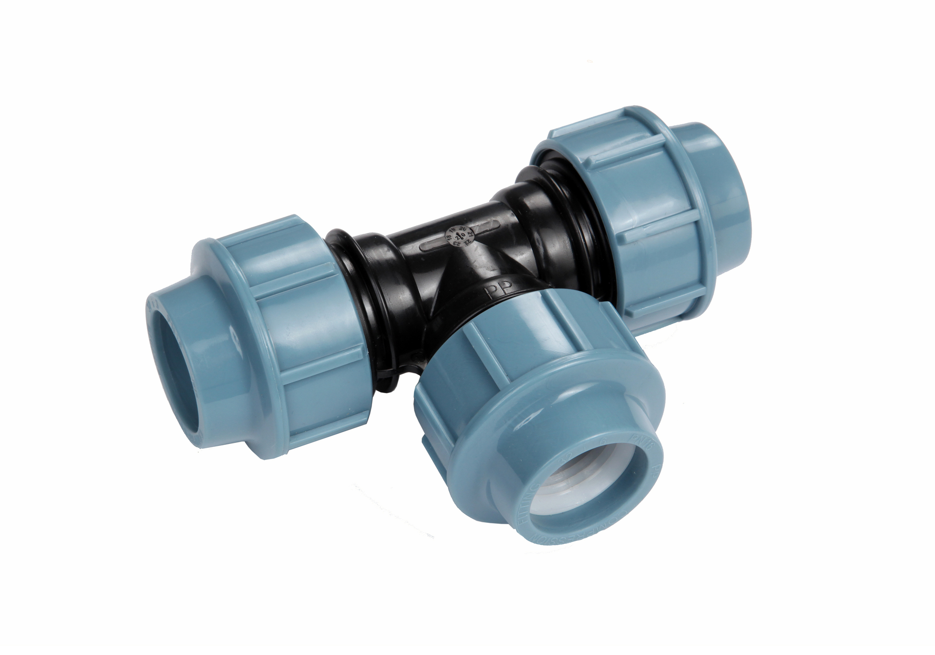 Verbindungsstück in T-Form für um Wasserrohre miteinander zu verbinden. Gefertigt aus schlagfestem Kunststoff und 3 Anschlüssen für 32 mm (1″)