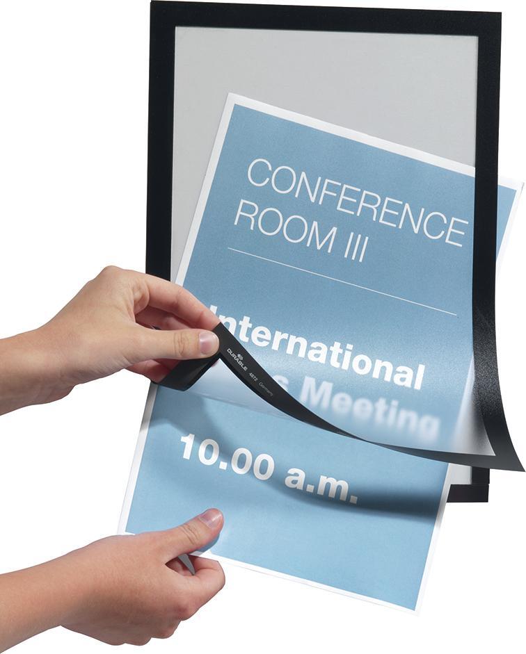 Hinweis: Schnelles Einlegen und Auswechseln von Dokumenten durch aufklappbaren Magnetrahmen.