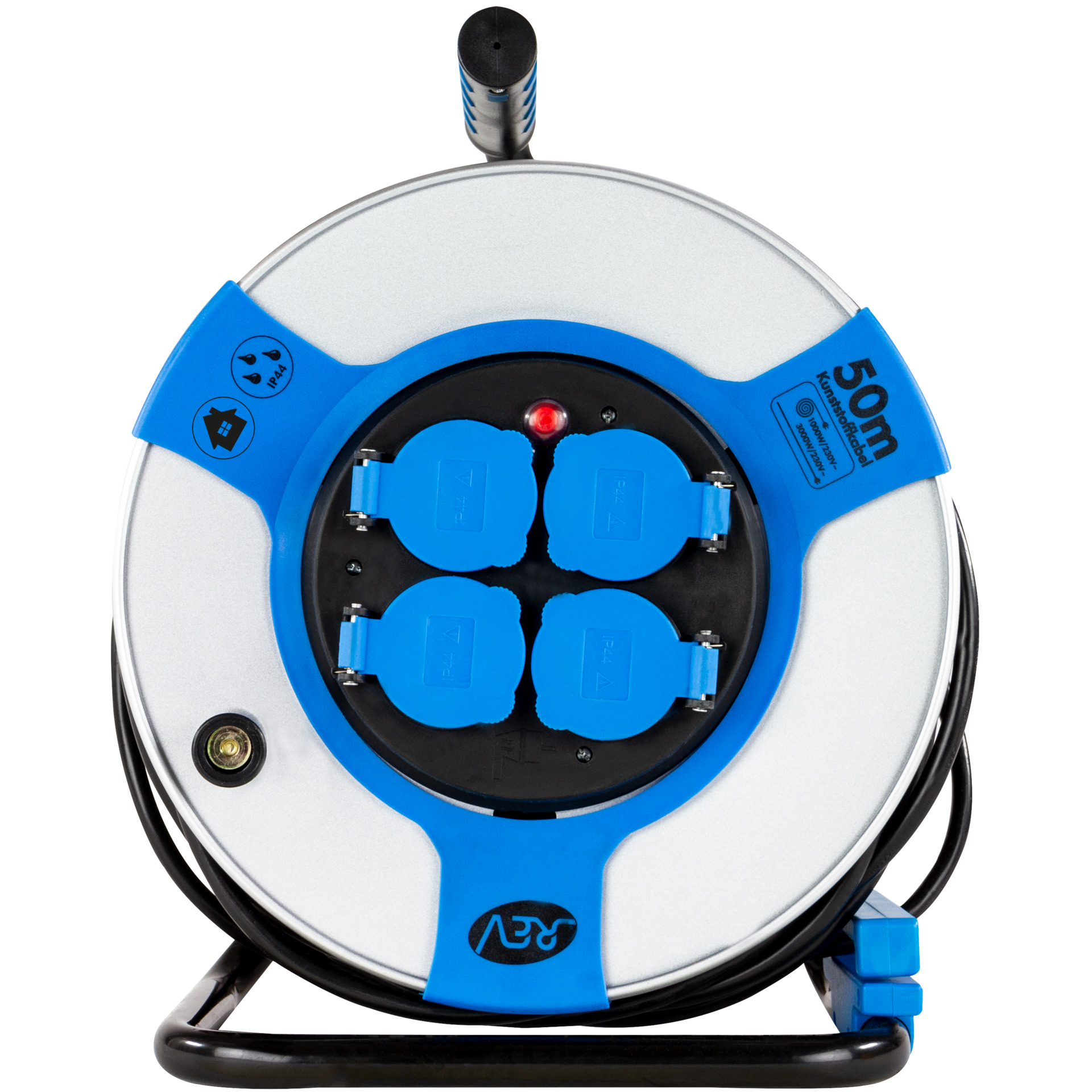 Kabeltrommel mit 4 Schutzkontaktsteckdosen.